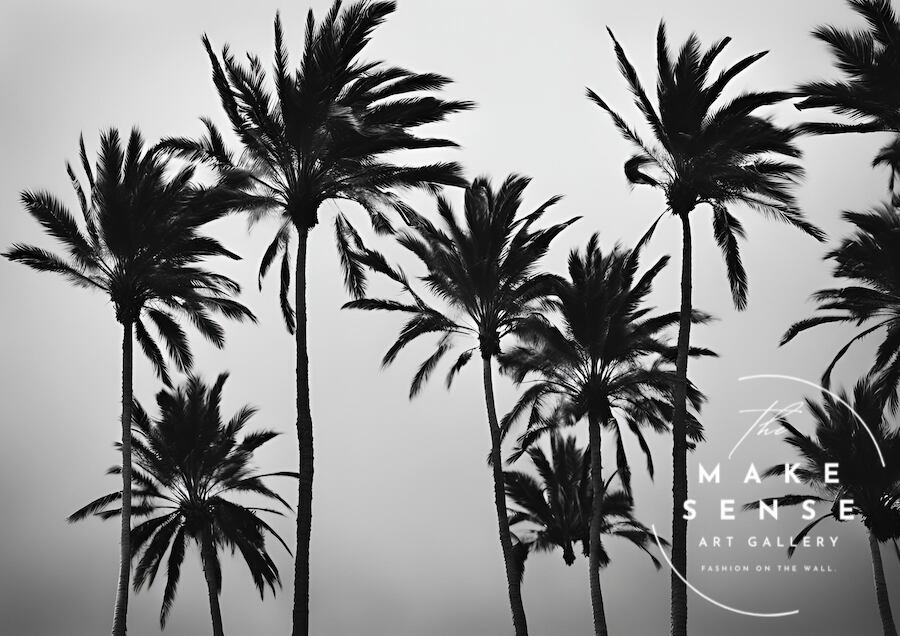 swaying palm tree|西海岸の風を感じるモノクロパームツリーアート|大人のモダン空間に似合うスタイリッシュポスター|A3ポスター
