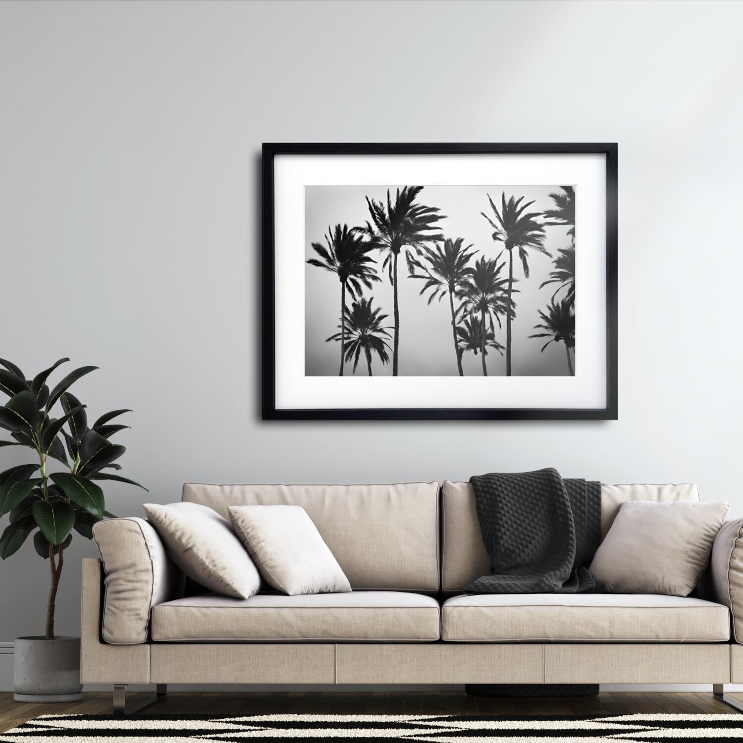カリフォルニアの風を感じるようなスタイリッシュな一枚で、西海岸系・モノクロ・モダンインテリアと相性抜群。