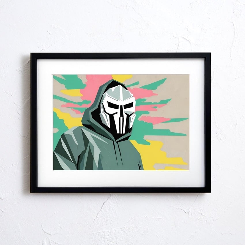 独創的なラップとビート、唯一無二のマスク姿で知られる伝説的MC “MF DOOM” をアートポスターとして表現。