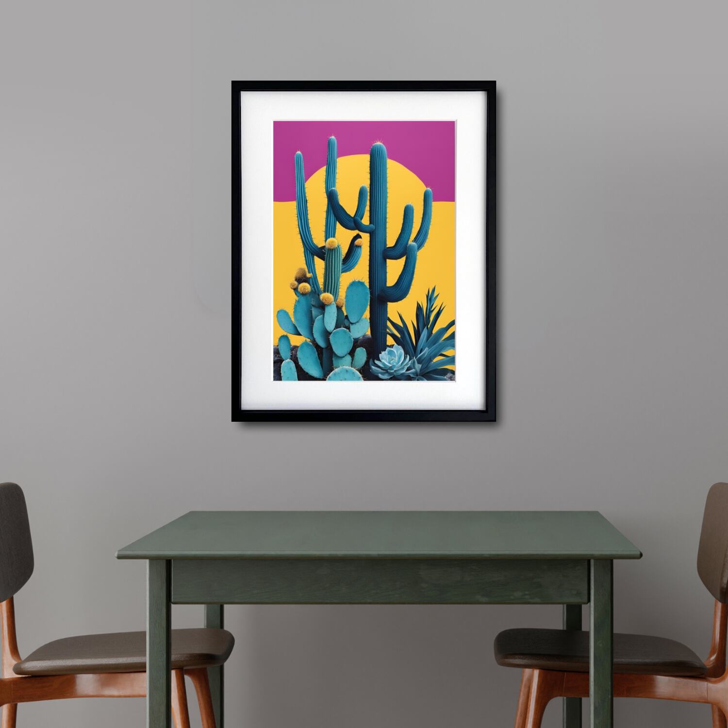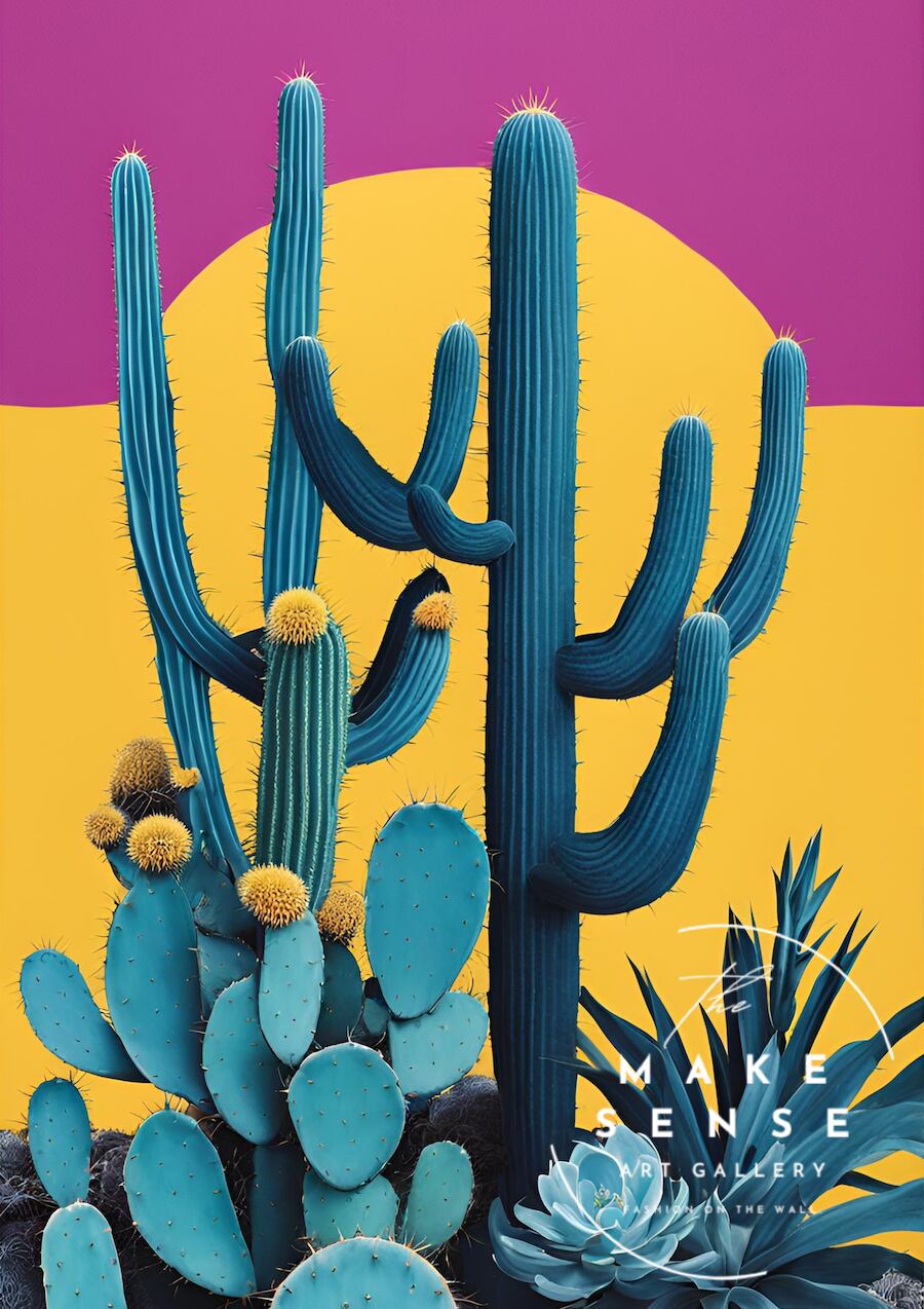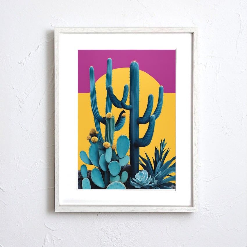 カラフルなサボテンをレトロポップに描いたヴィンテージテイストのアートポスター。