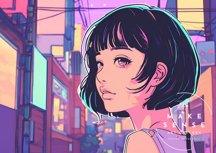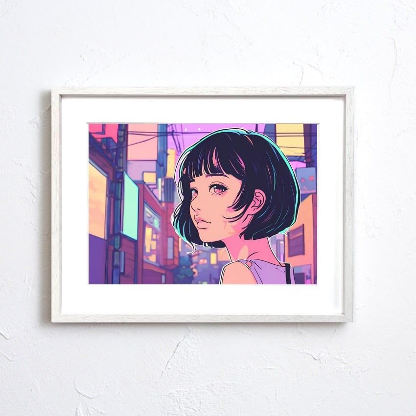 Bob Girl VII|レトロでかわいい女の子のパステルアートポスター|ガーリーでファンシーな雰囲気をつくるおしゃれ壁掛けアート|お部屋を明るく彩る一枚A2ポスター