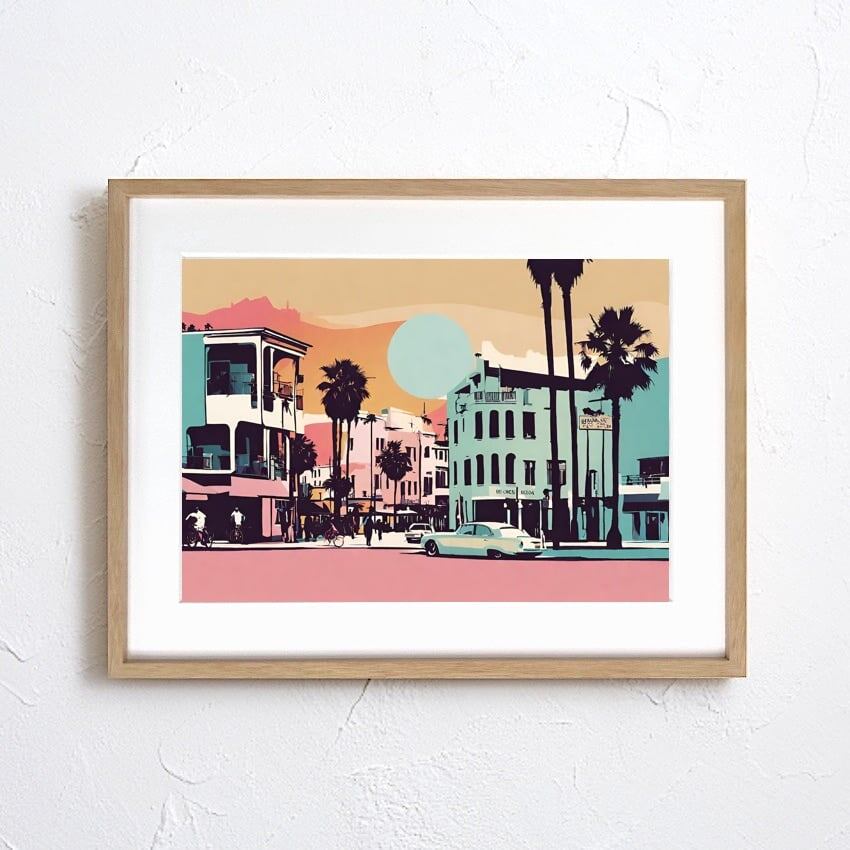 Venice|西海岸ベニスビーチを抽象的に描いたヴィンテージ風アートポスター|夏気分を高めるレトロミニマルデザイン|リビング寝室玄関に映える風景アート|カリフォルニアの抜け感を添える一枚A3ポスター