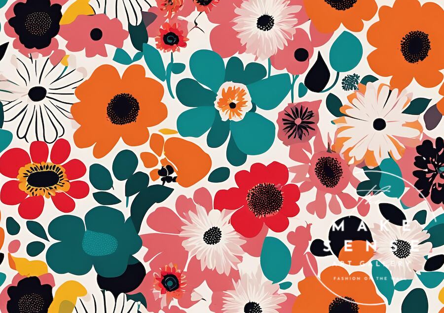 優しく咲く花々が、空間に明るさと心地よいリズムをもたらす一枚です。