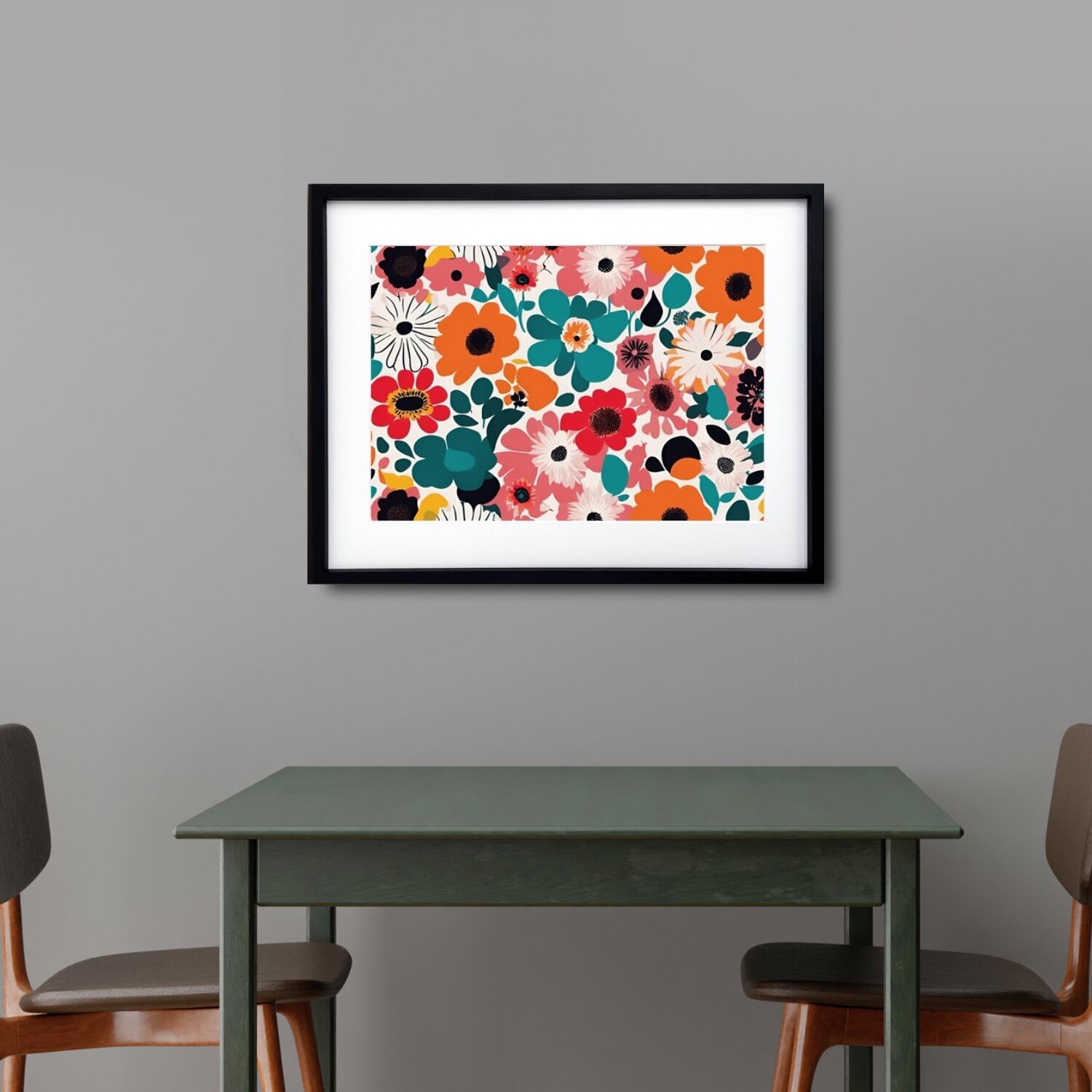 優しく咲く花々が、空間に明るさと心地よいリズムをもたらす一枚です。