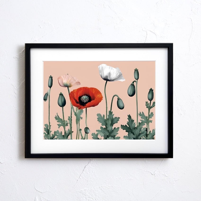 ひらりと咲くポピーの軽やかな動きを、ミニマルで上品に描いたボタニカルアート。