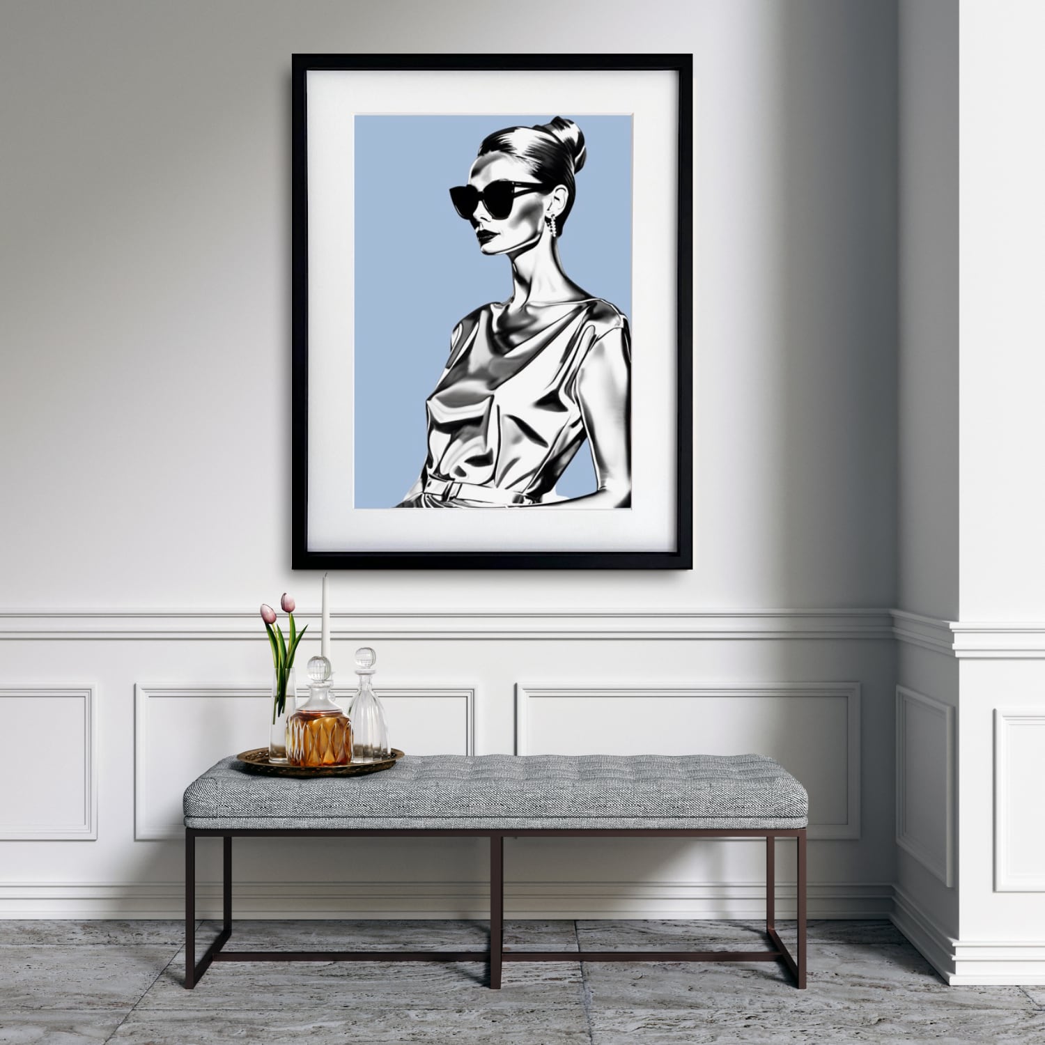 クールなブルーが印象的な本作は、洗練された都会的な空間に映える一枚。