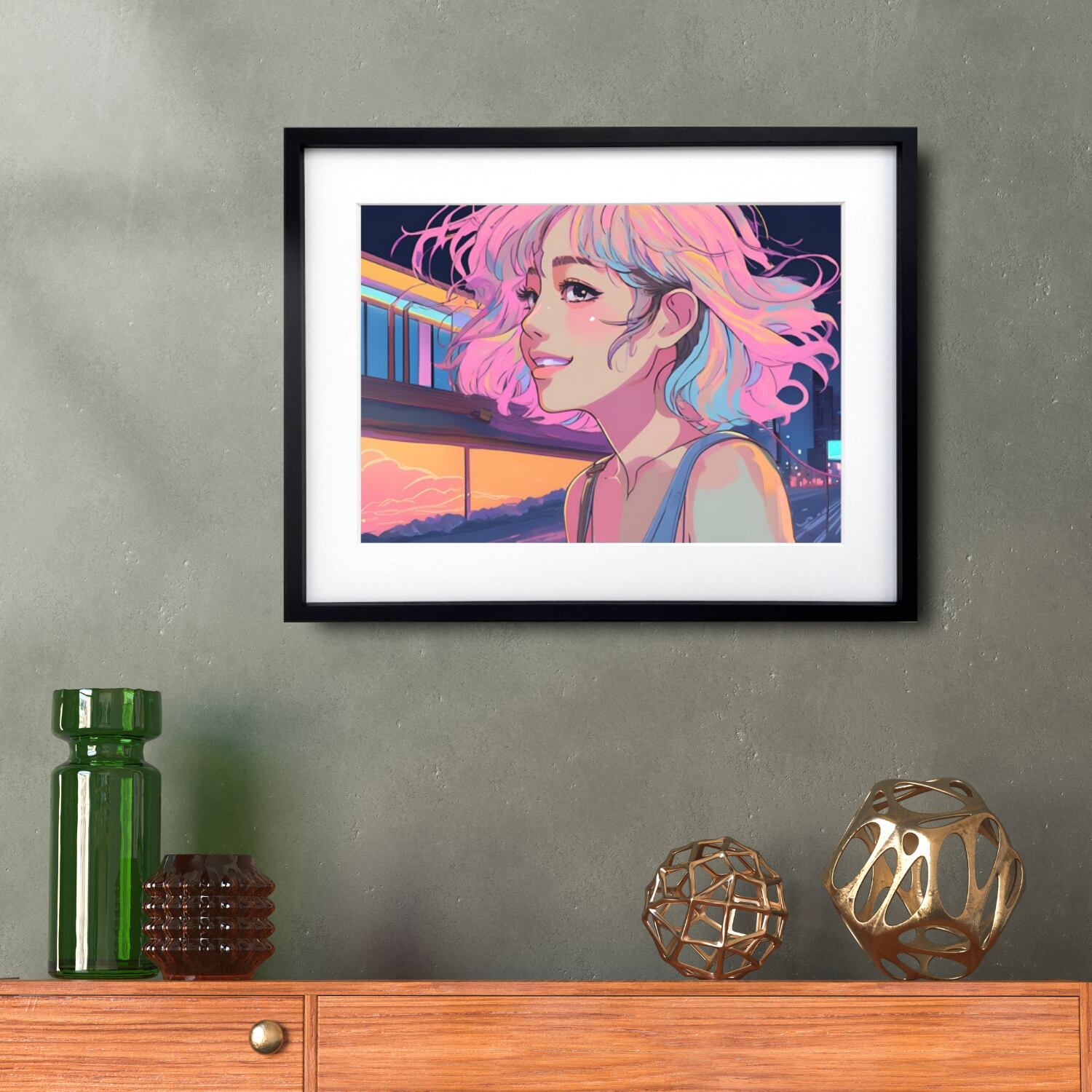 Bob Girl Ⅵ|レトロでかわいいパステルガールのアートポスター|優しい色彩が空間を華やかに彩る北欧ガーリーインテリアに映える一枚A4ポスター