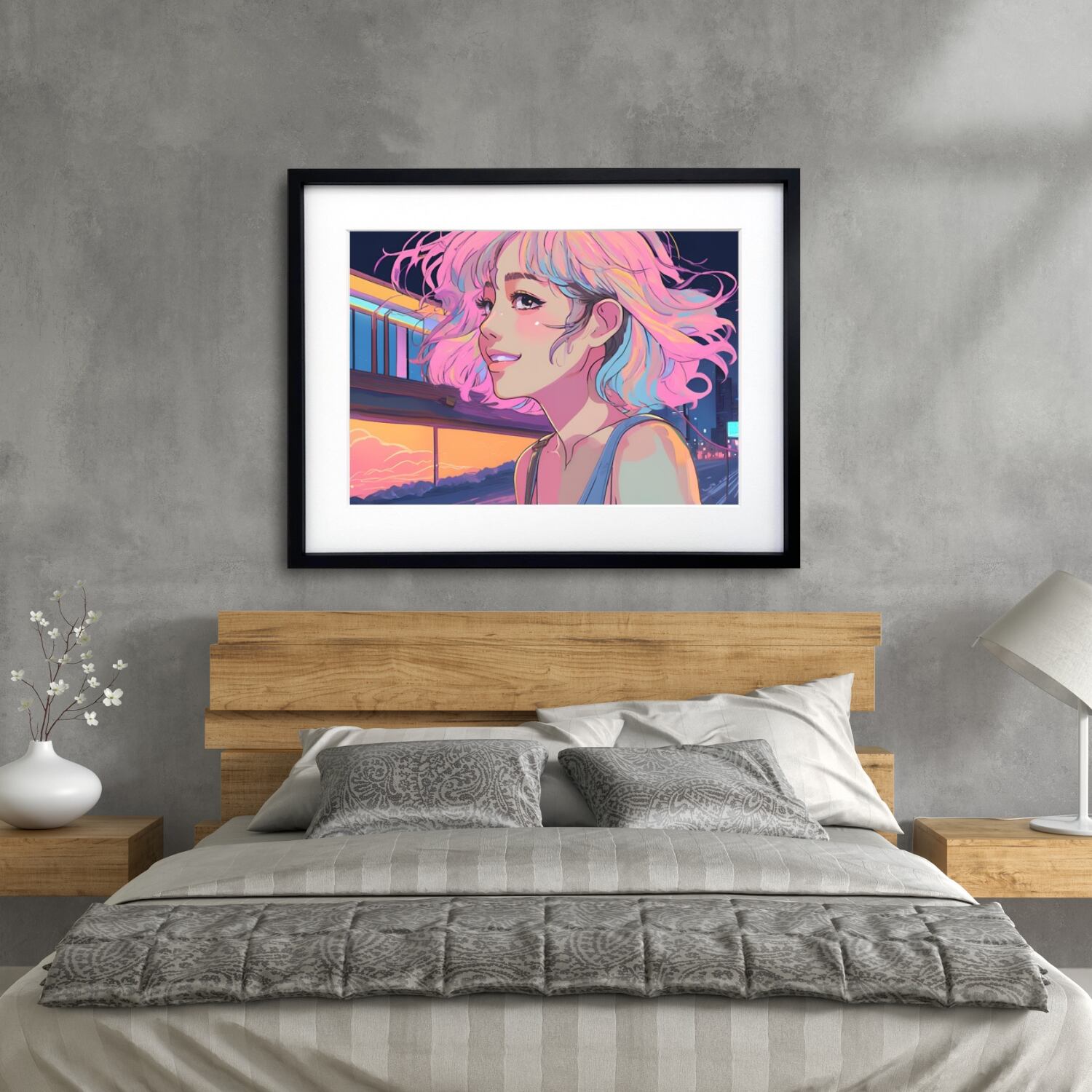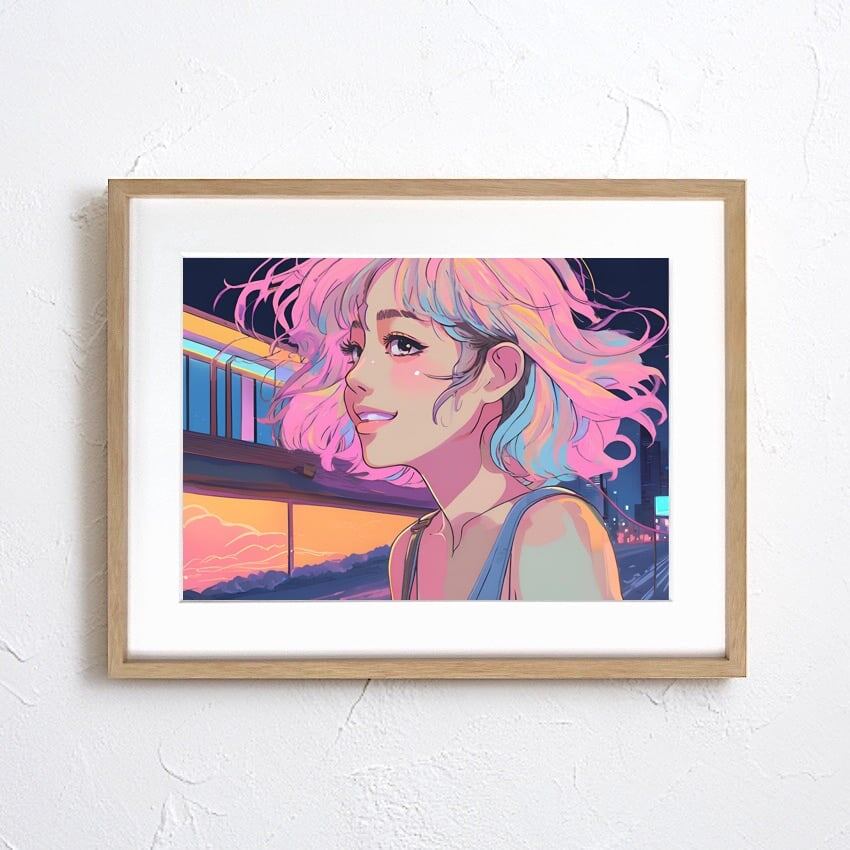 Bob Girl Ⅵ|レトロでかわいいパステルガールのアートポスター|優しい色彩が空間を華やかに彩る北欧ガーリーインテリアに映える一枚A3ポスター