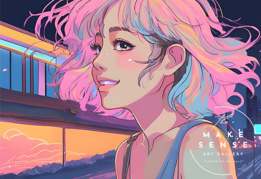 レトロな女の子×パステルカラーを組み合わせた、やさしくかわいい世界観のアート。