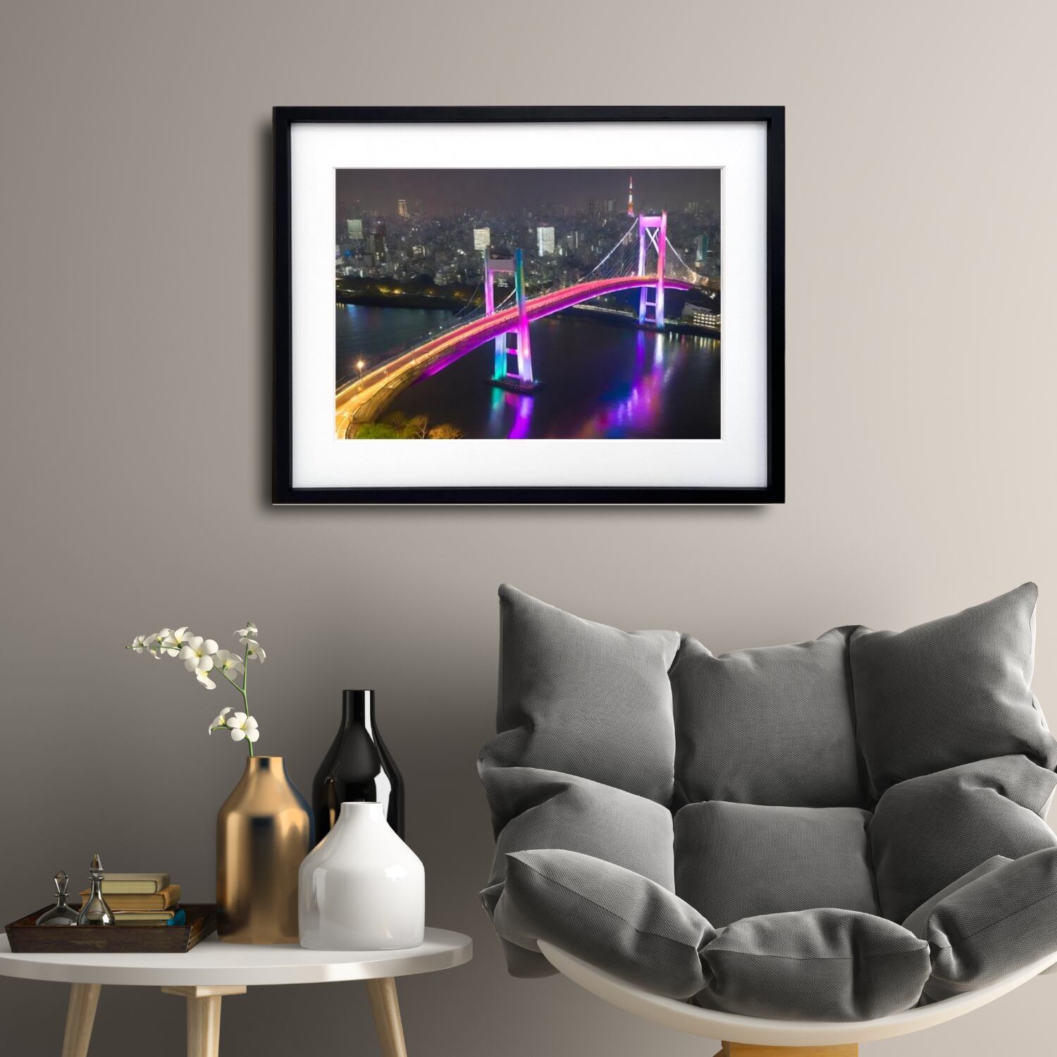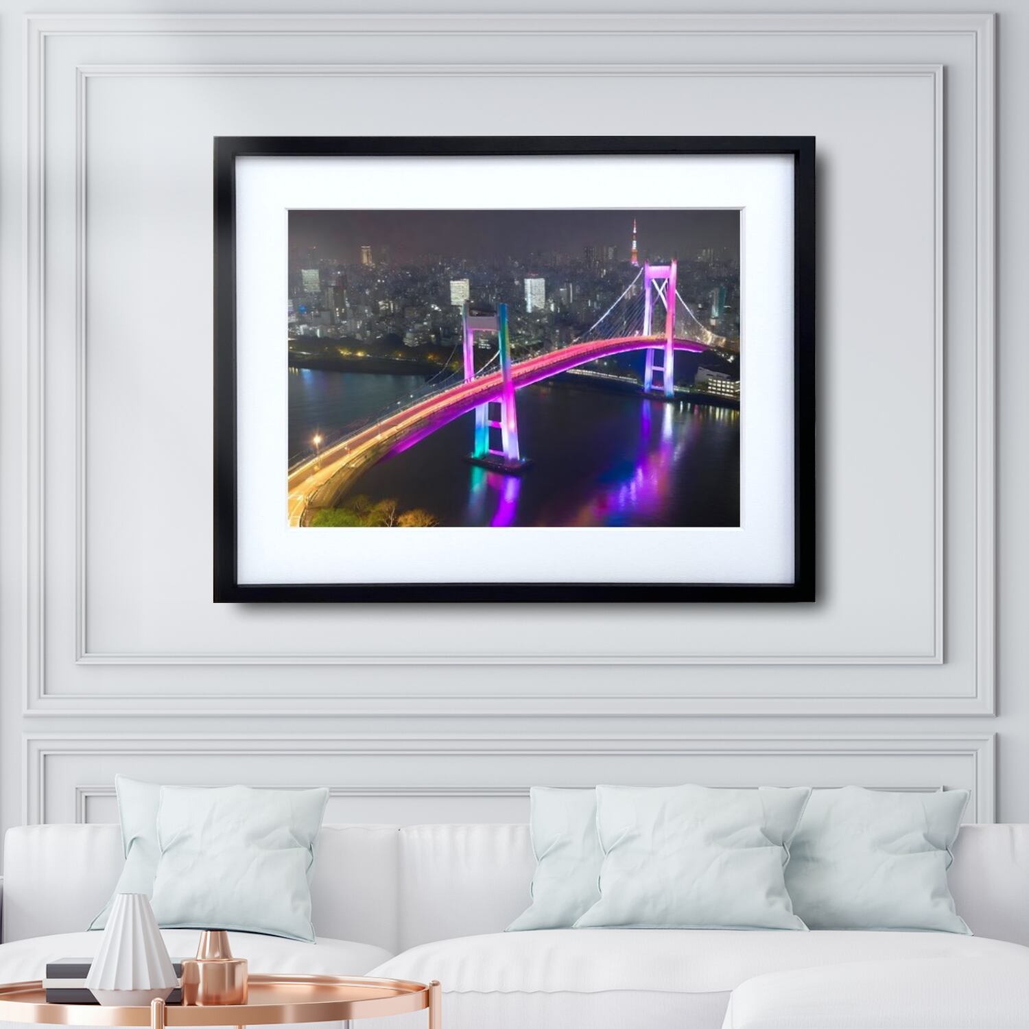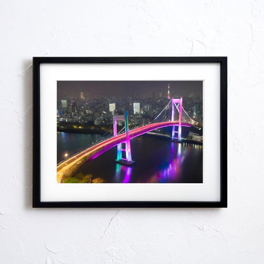 Raindoo Bridge Tokyo|東京タワーとレインボーブリッジを描いた夜景アートポスター|都会的で洗練されたお部屋を演出する一枚A3ポスター