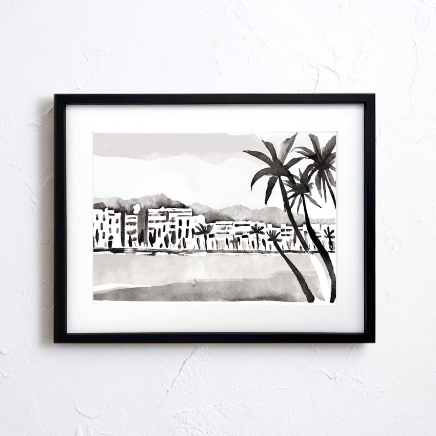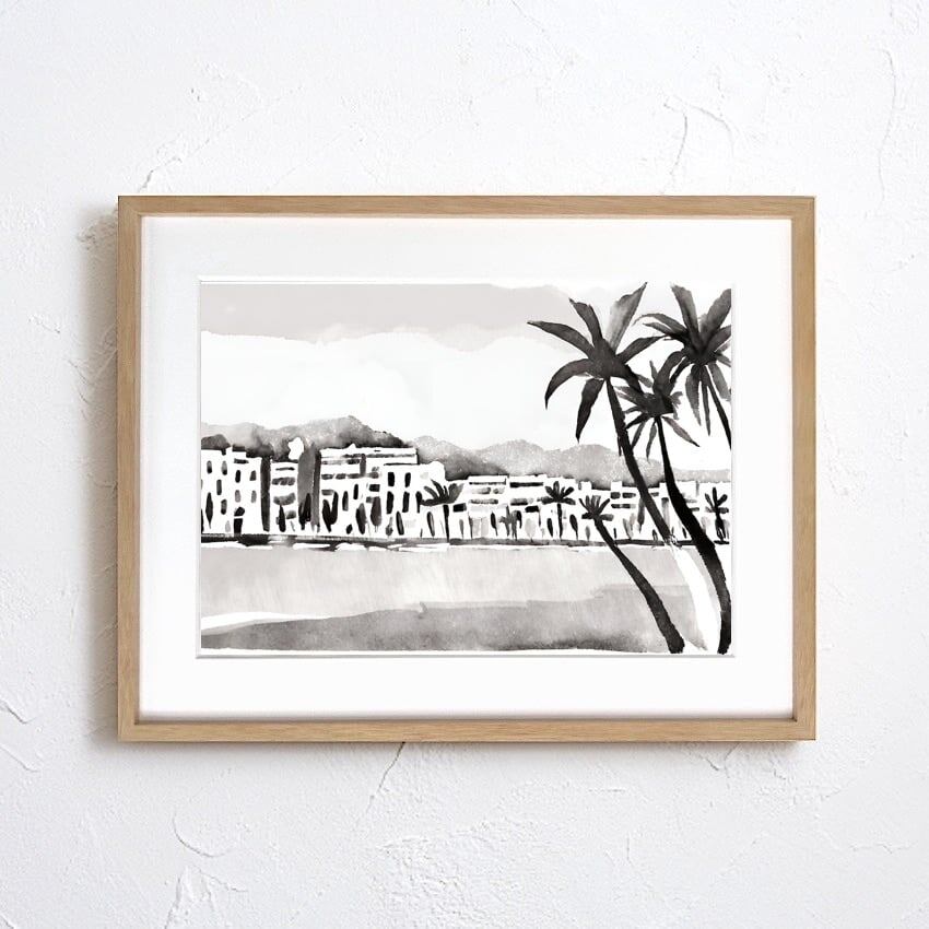 海へと続く静かな道をモノクロで表現した、大人のための上質アートポスター。