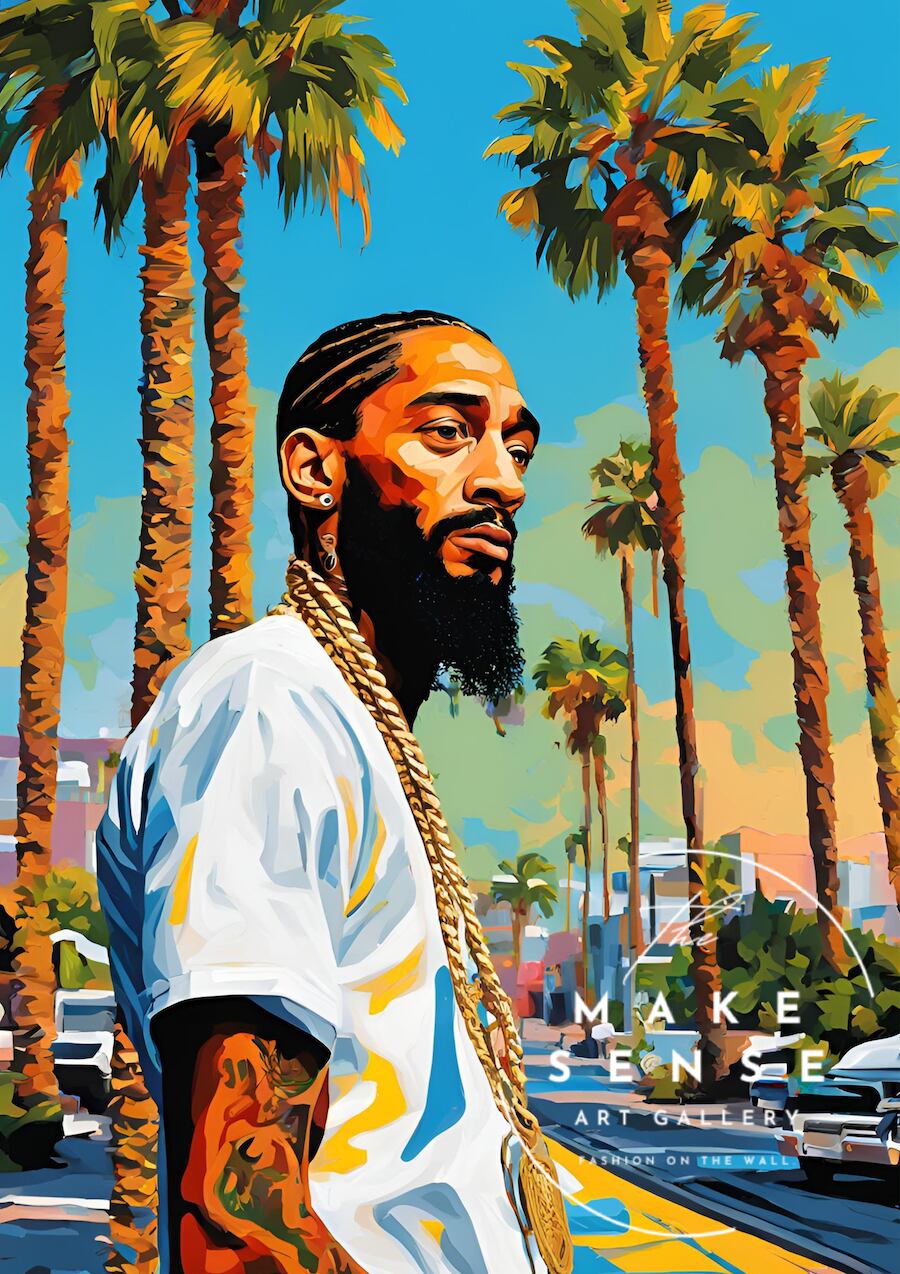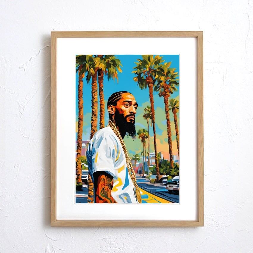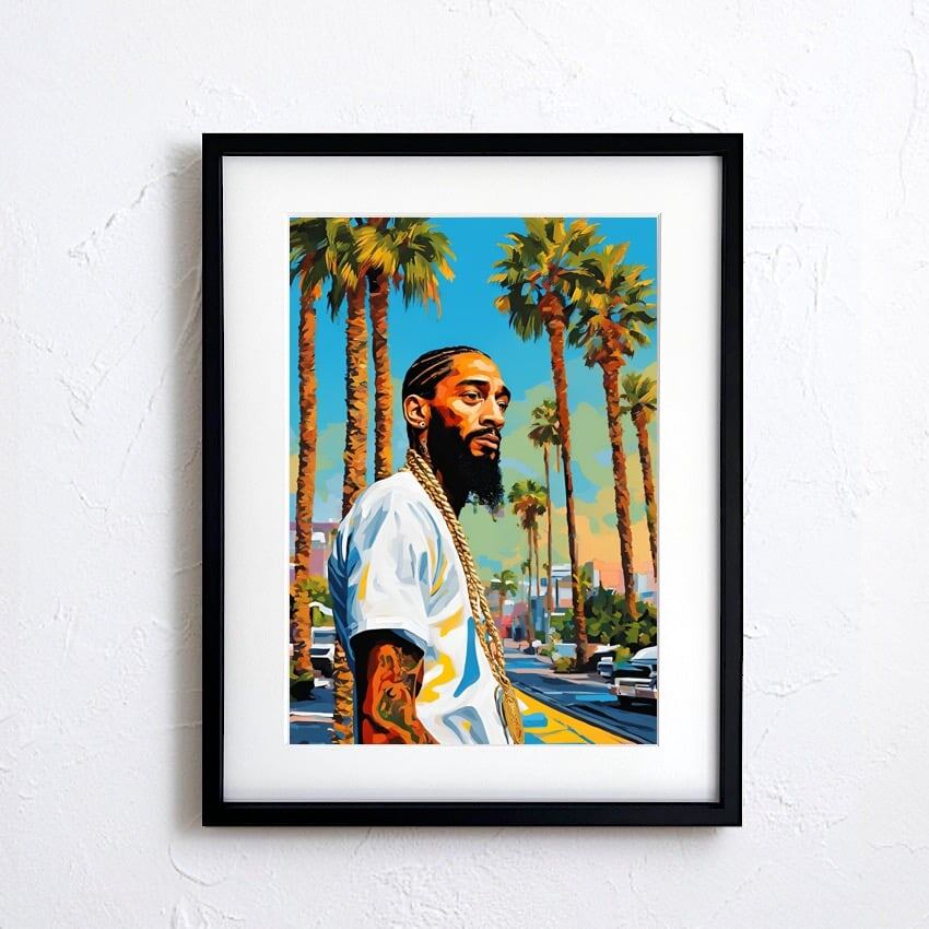 Nipsey Hussle|クレンショーのレジェンドをオマージュしたストリートアートポスター|モダン空間に映える西海岸スタイル|日本製A3ポスター