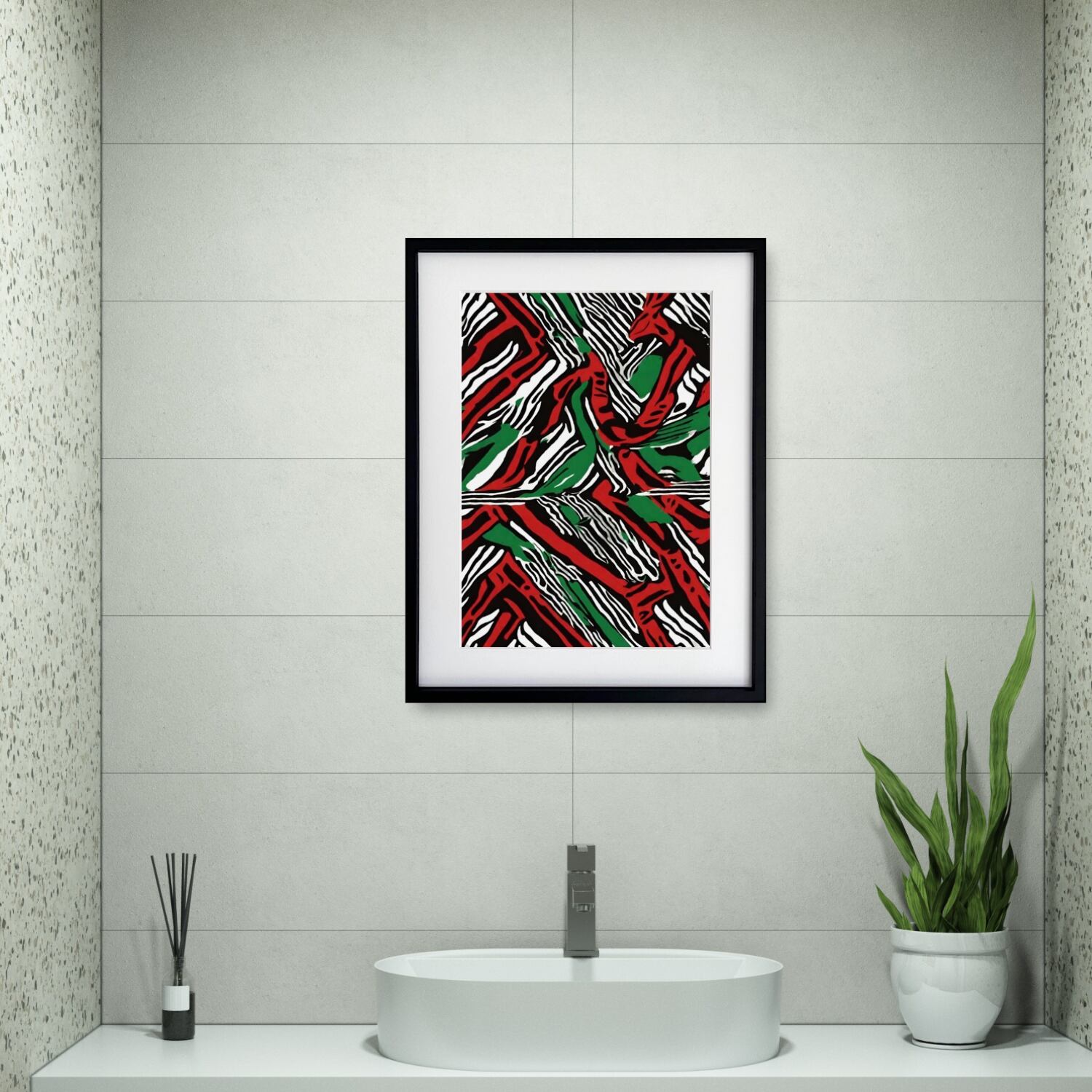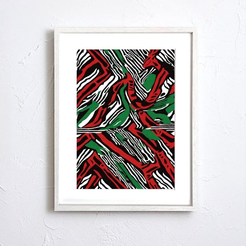 独特のリズムとグラフィカルな表現が、空間に新しいエネルギーを与えてくれる一枚です。