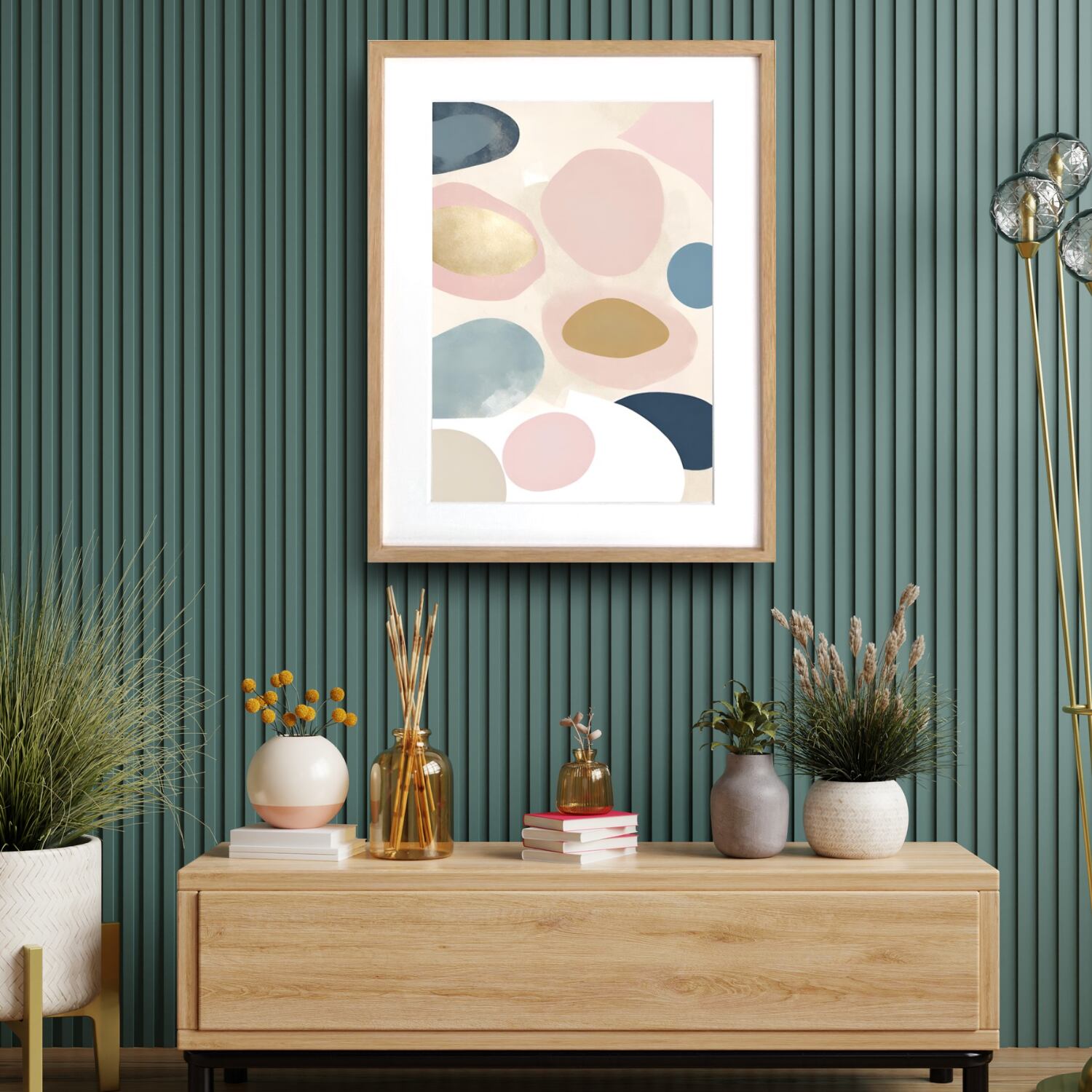 くすみカラーとミニマルなラインで「柔らかな動き」を描いた北欧モダンアート。