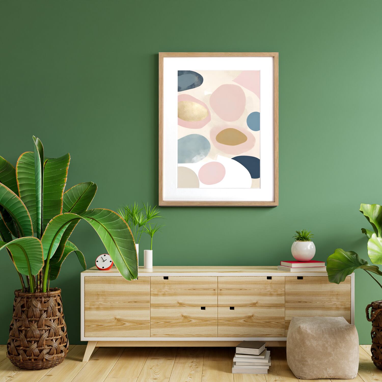 くすみカラーとミニマルなラインで「柔らかな動き」を描いた北欧モダンアート。