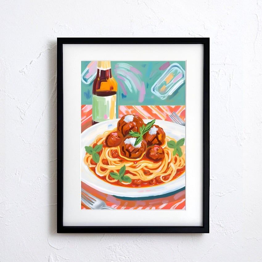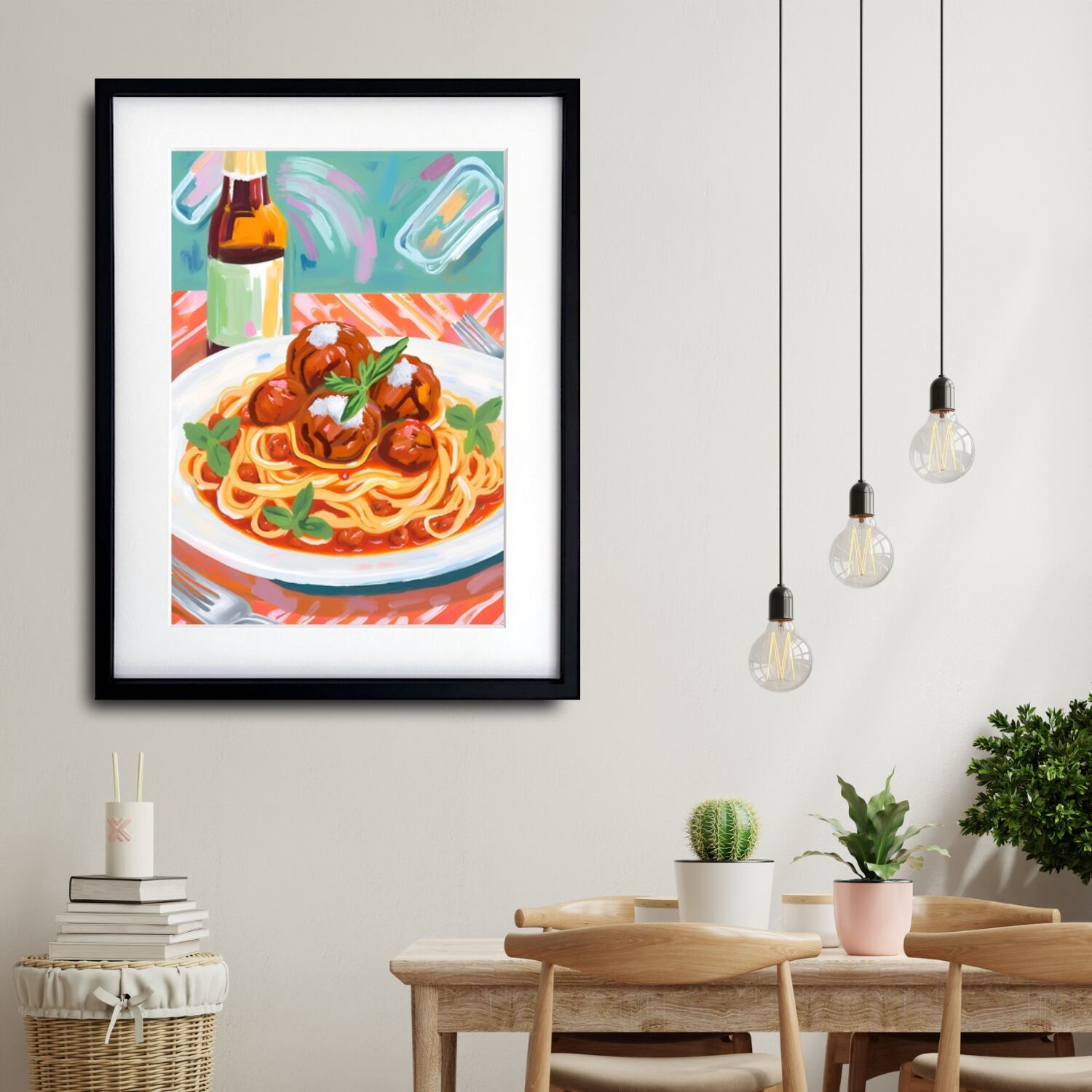 Spaghetti de la Hood|ミートボールスパゲッティを抽象表現したポップアートポスター|モダンインテリアに映えるユニークデザイン|日本製A3ポスター