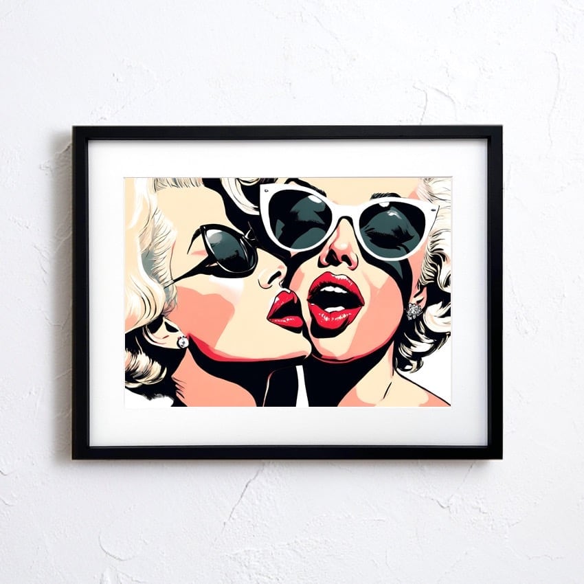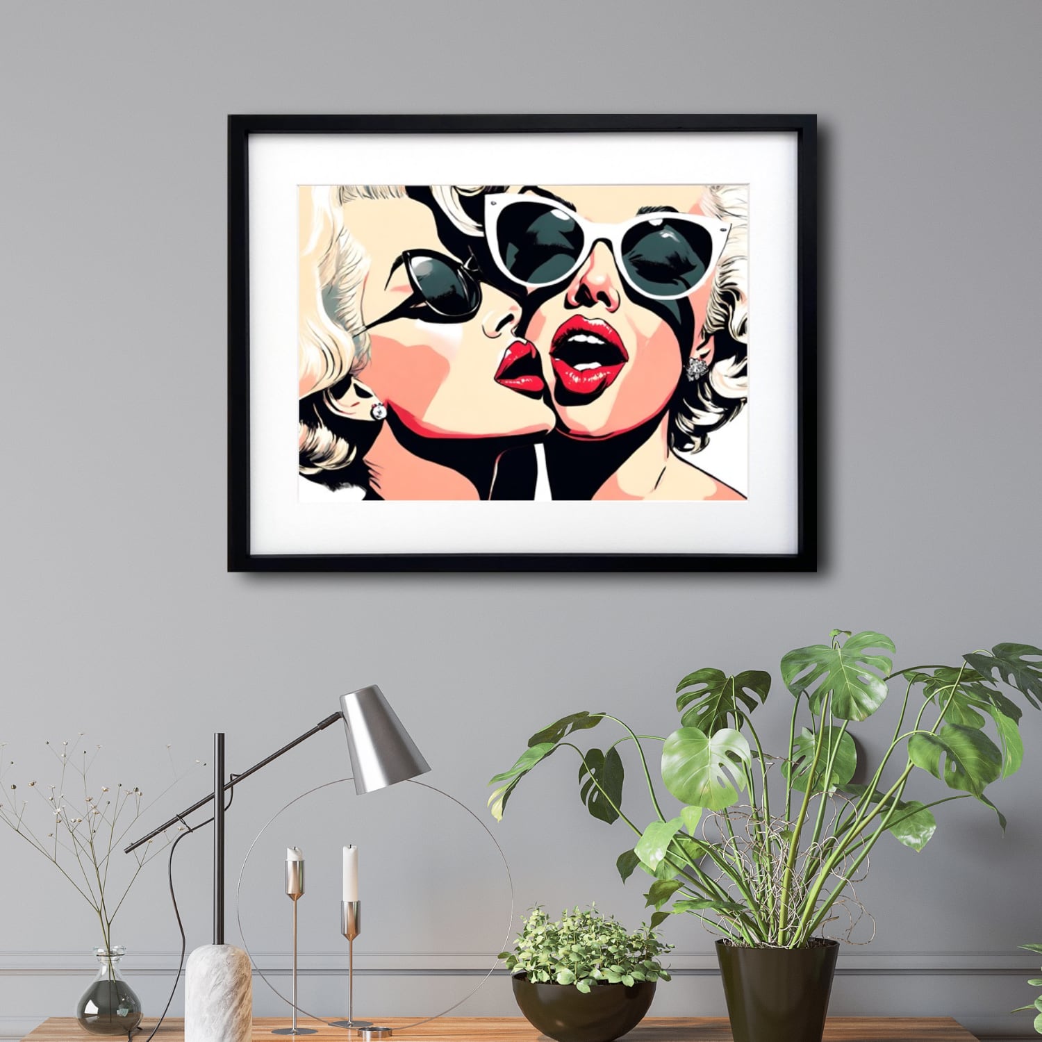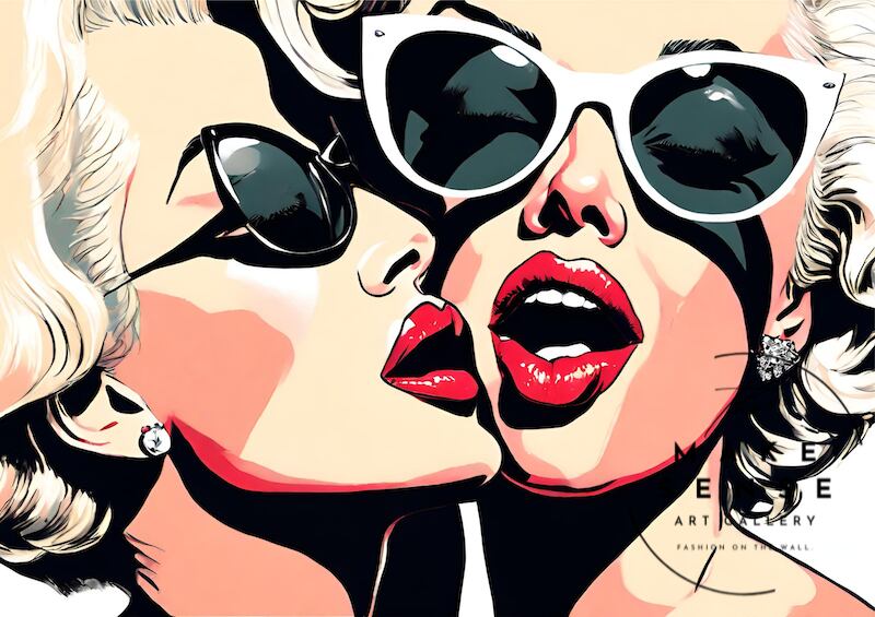 双子のマリリンモンローが鮮やかにキスを交わす、