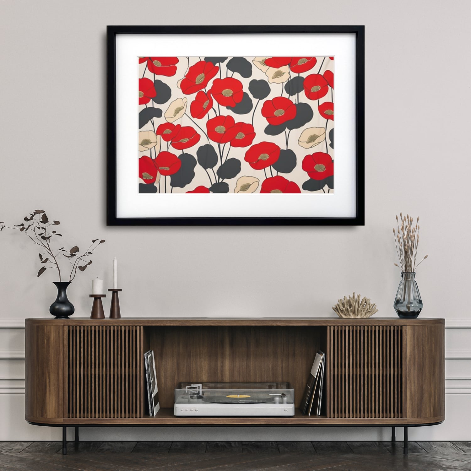 Vivid|赤と白の北欧テイストが映える抽象ボタニカルアートポスター|空間を鮮やかに彩るモダンデザイン|A3ポスター