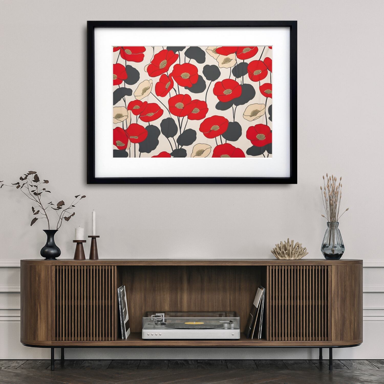 Vivid|赤と白の北欧テイストが映える抽象ボタニカルアートポスター|空間を鮮やかに彩るモダンデザイン|A2ポスター