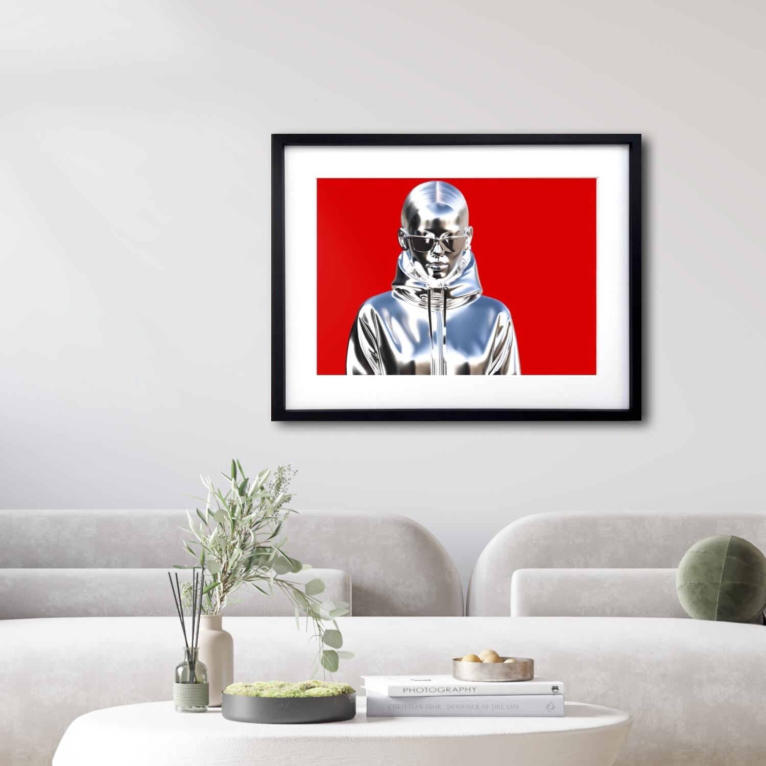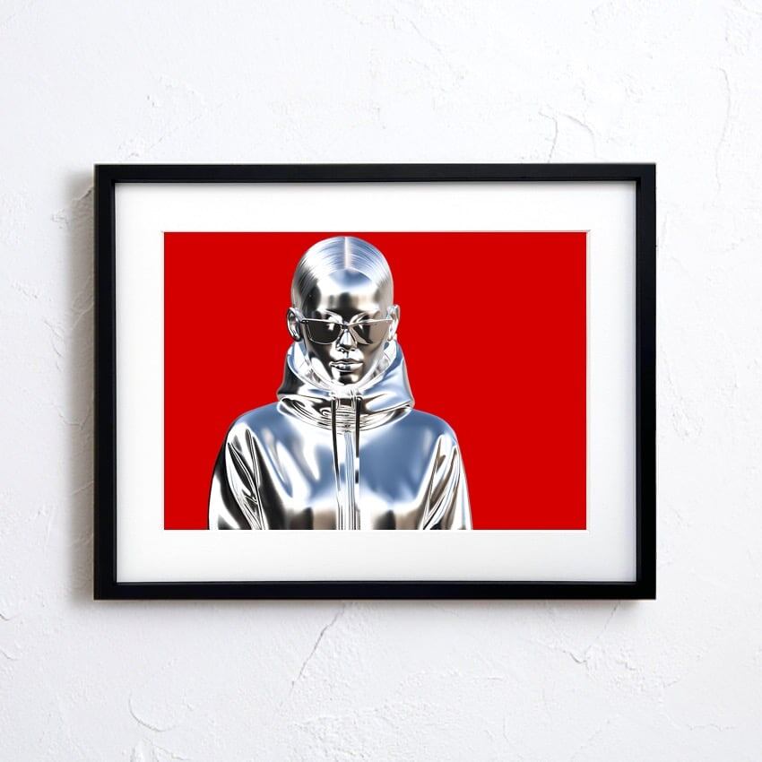 金属の質感と女性像を融合した、クールで独創性の高いアートポスターです。