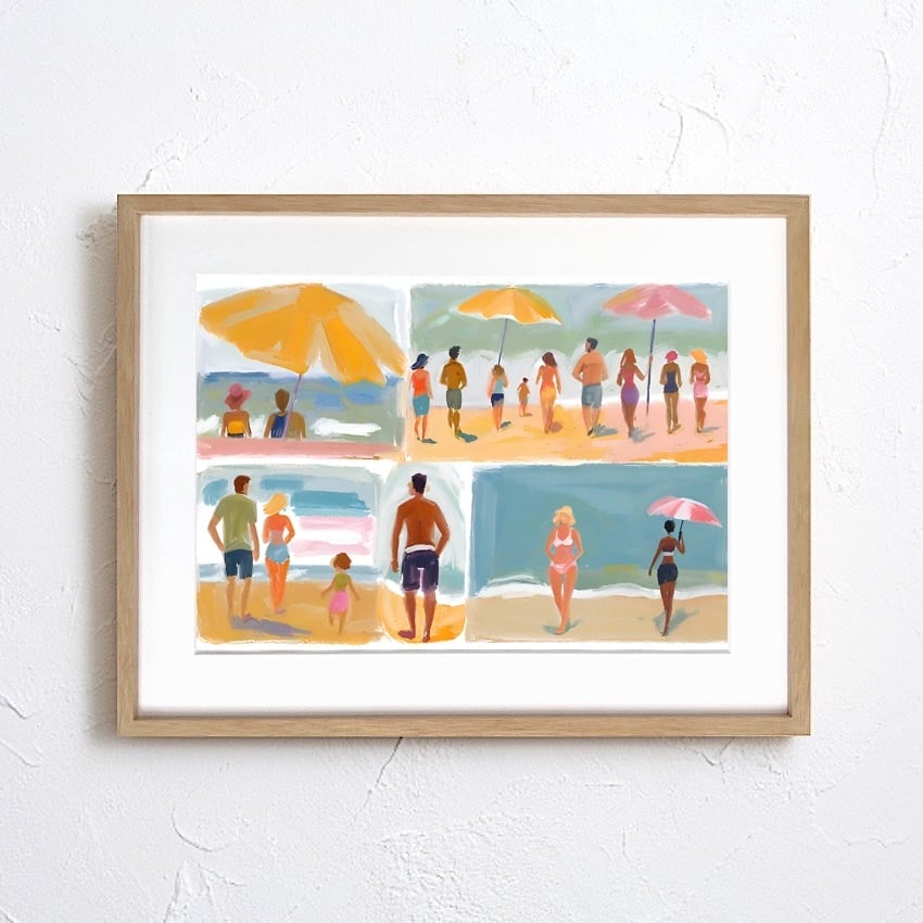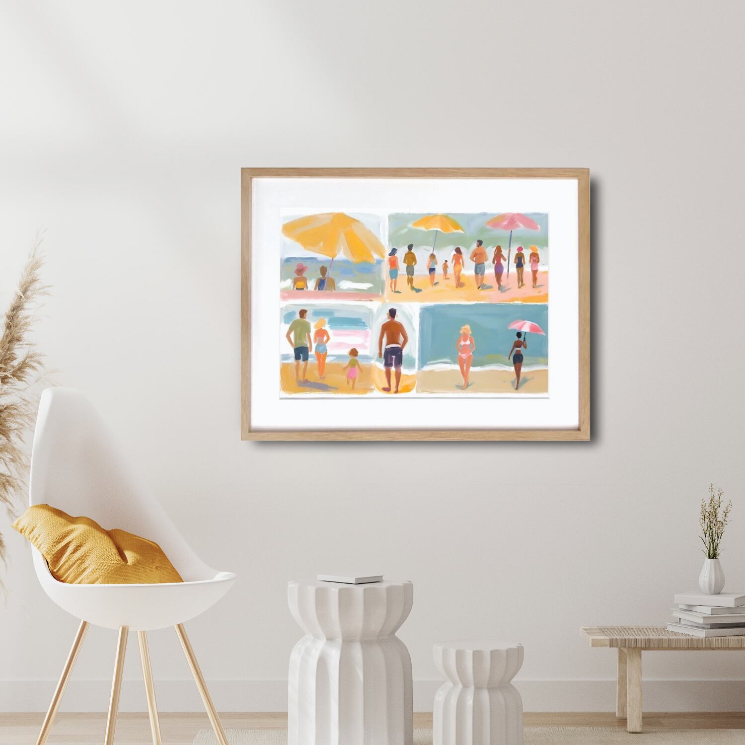 beach before evening ⅱ|夕暮れ前のビーチを描いたドローイングアートポスター|優しい色合いでどんな部屋にも馴染む|A3ポスター