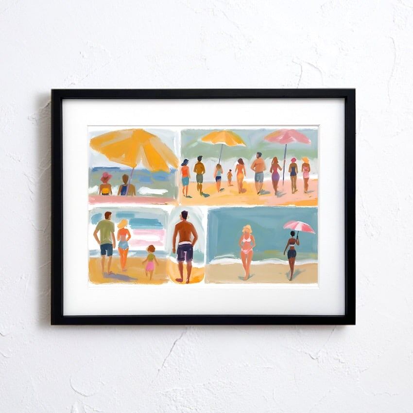 beach before evening ⅱ|夕暮れ前のビーチを描いたドローイングアートポスター|優しい色合いでどんな部屋にも馴染む|A2ポスター