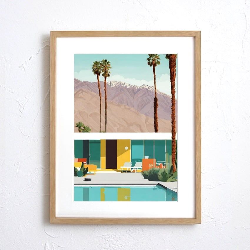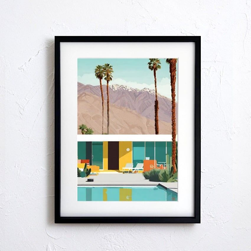 西海岸・ハリウッドの風景をレトロに描いたアートポスター。