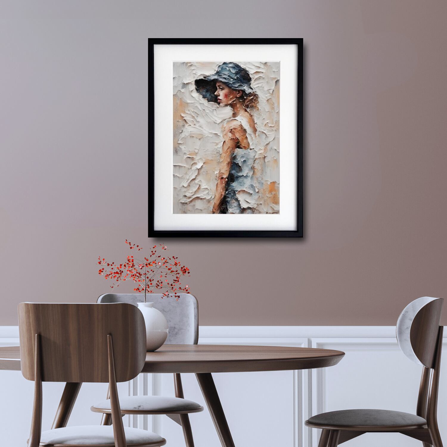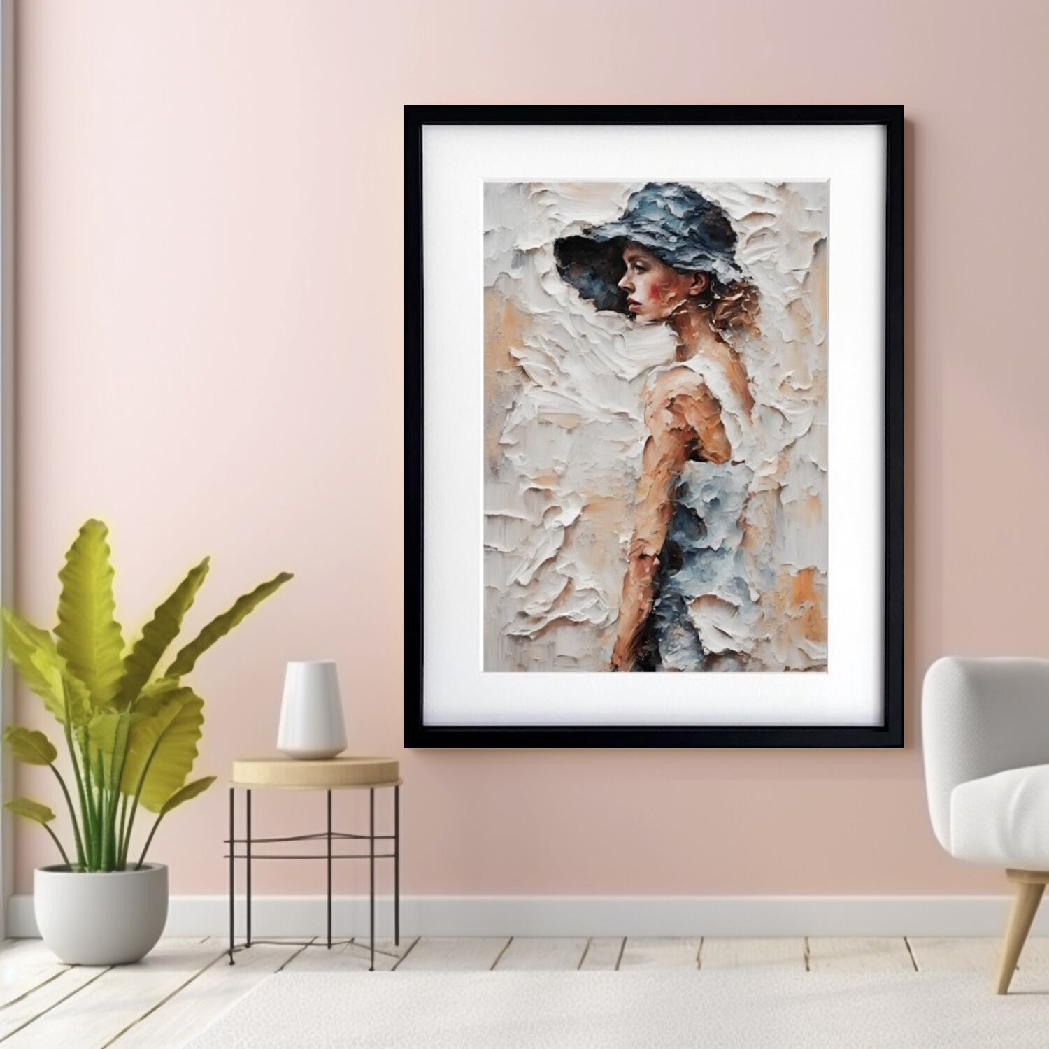 Serene|静けさを纏う少女の油絵風アートポスター|北欧ミニマルに映える癒しの一枚|A3ポスター