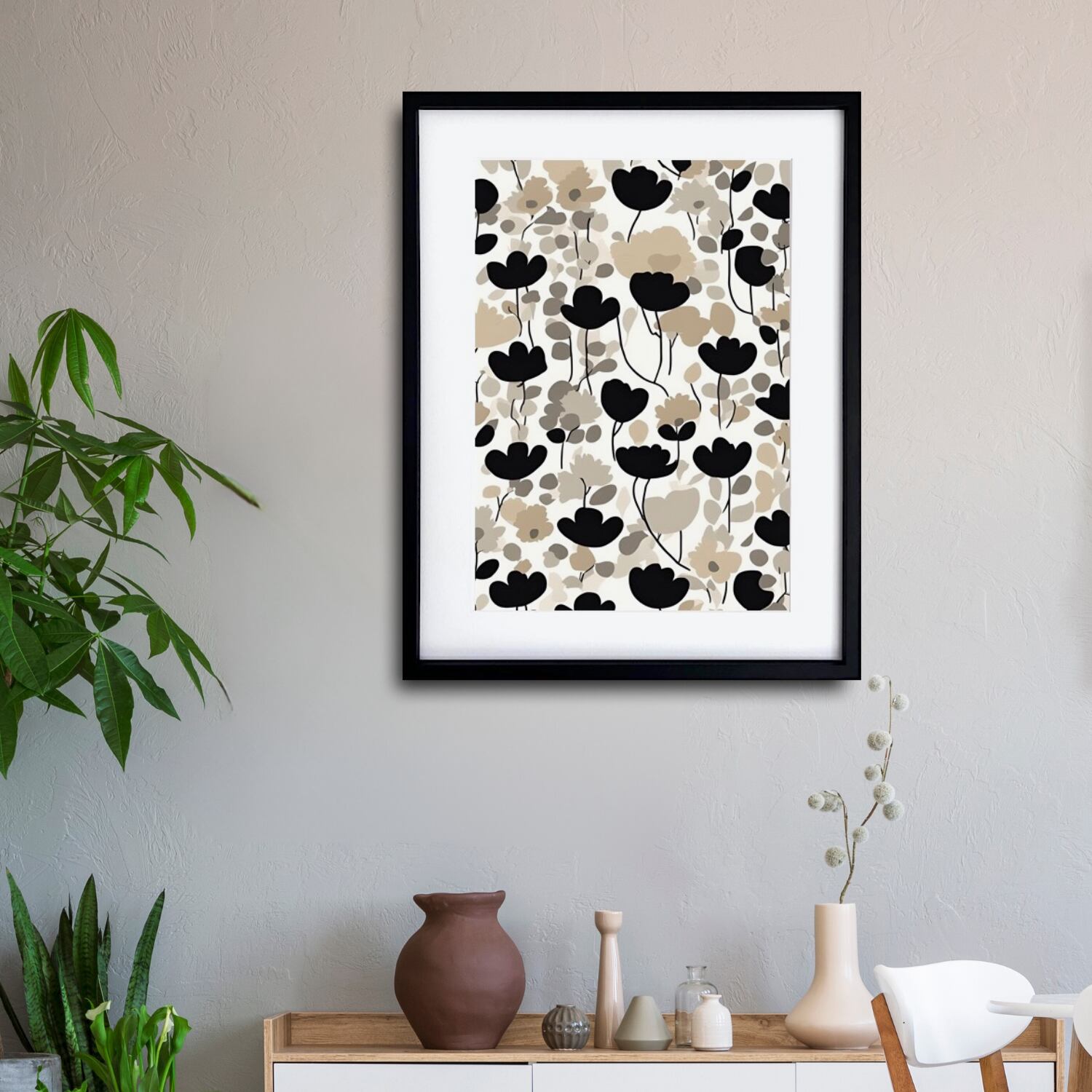 Quietude|上品でシックなポピーの北欧ボタニカルアートポスター|落ち着いた空間をつくるモダンフラワーインテリアA4ポスター