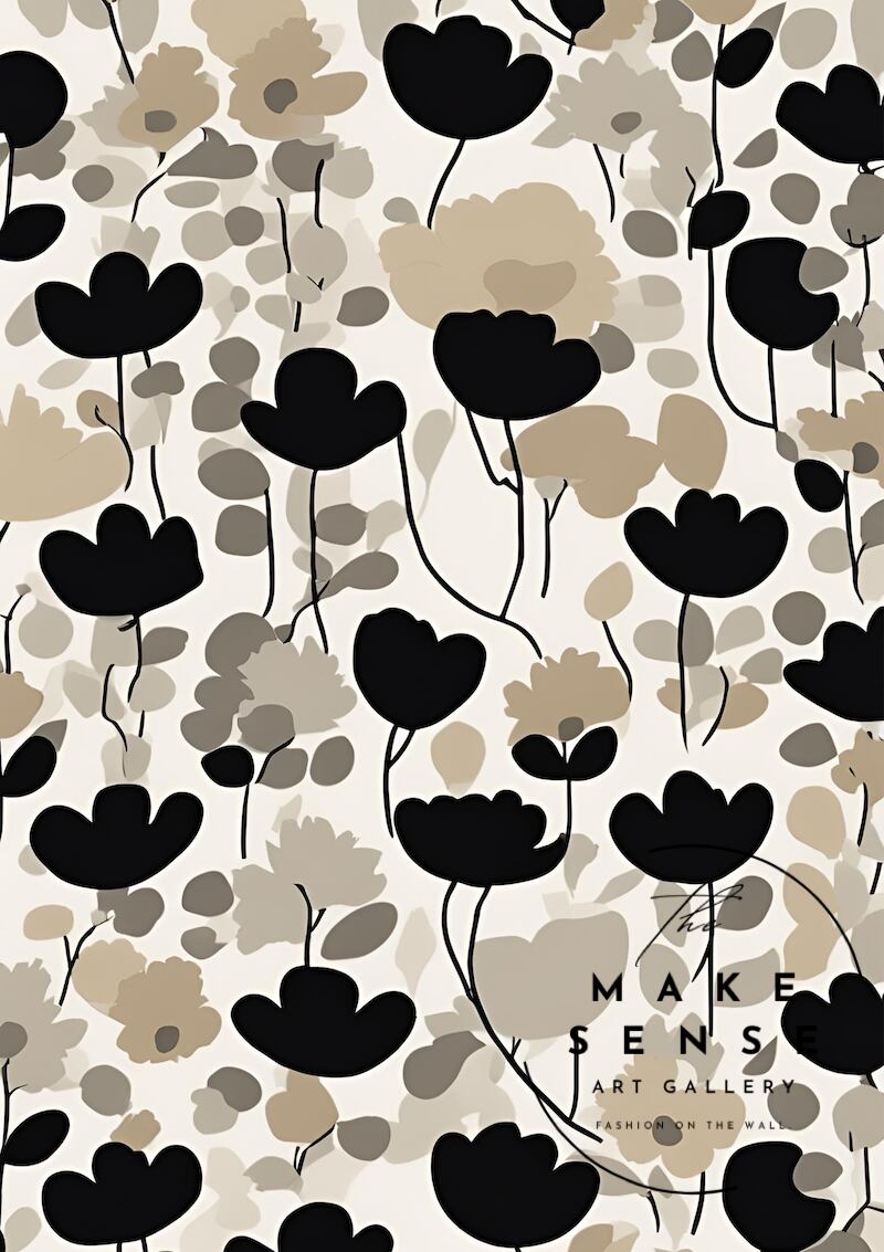 Quietude|上品でシックなポピーの北欧ボタニカルアートポスター|落ち着いた空間をつくるモダンフラワーインテリアA3ポスター