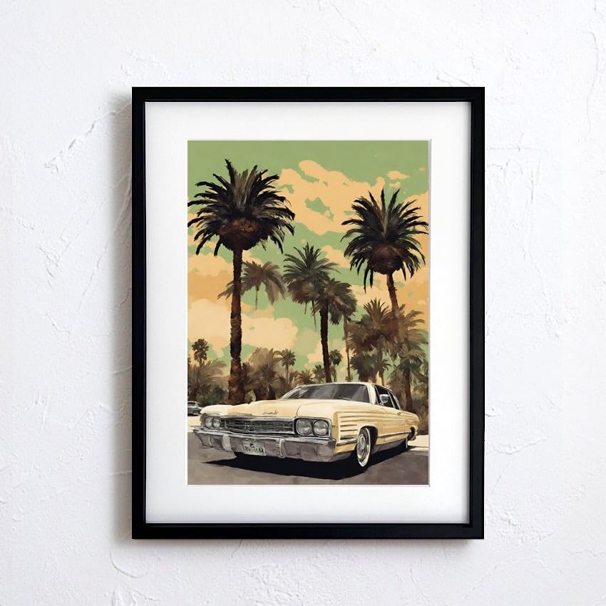 California Life|クラシックカーとパームツリーのヴィンテージアートポスター|カリフォルニア気分を楽しむ西海岸インテリアA4ポスター