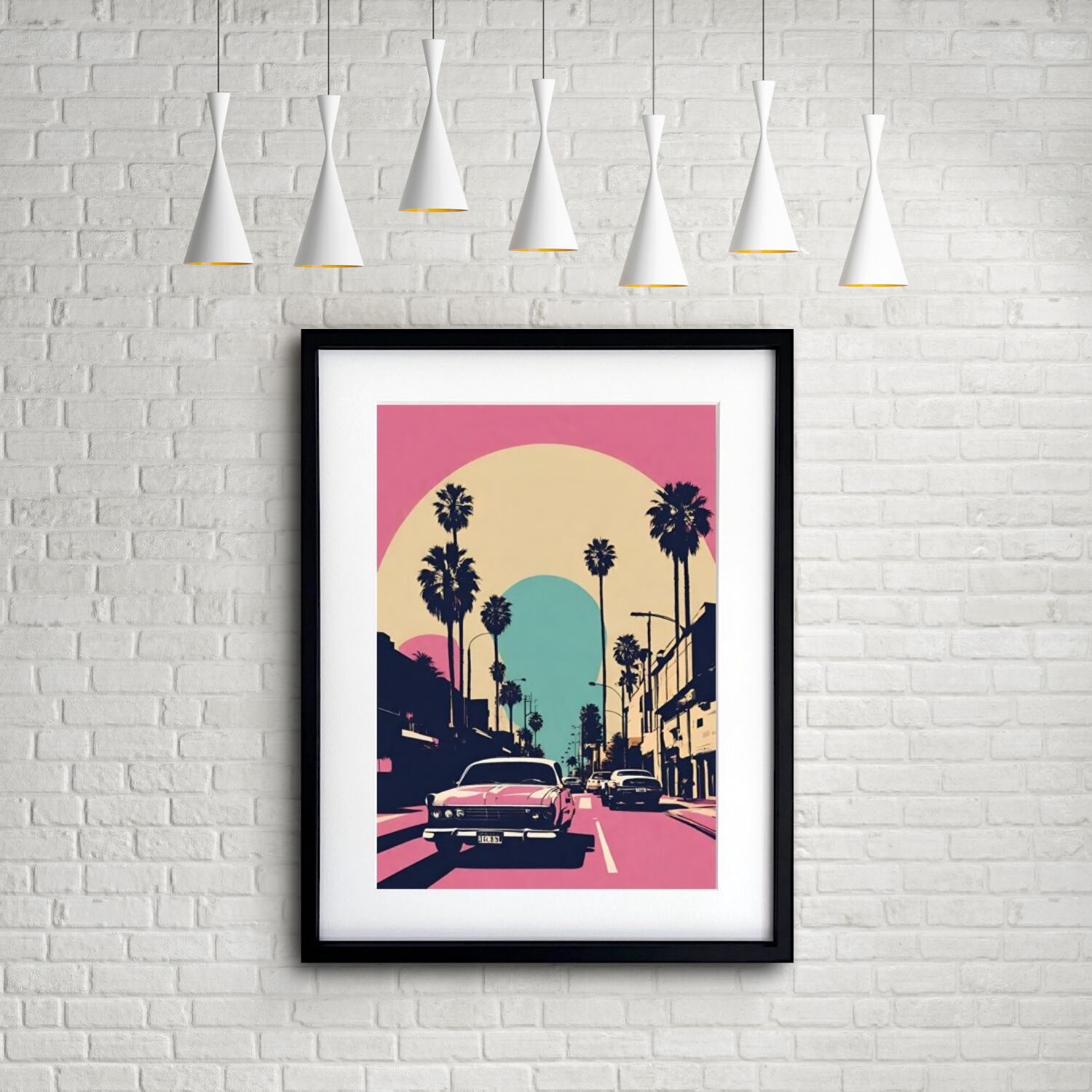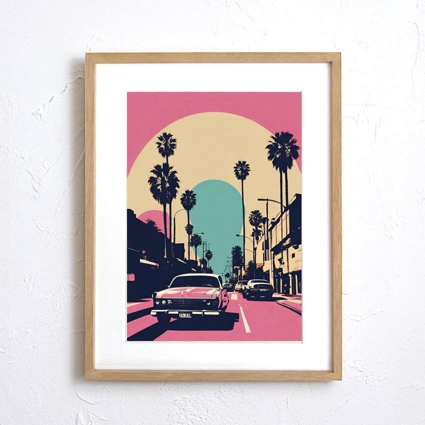 LA Bluebird|ロサンゼルスのサンセットを描いたレトロビンテージポスター|西海岸テイストの大人モダンな部屋に合うアートA2ポスター