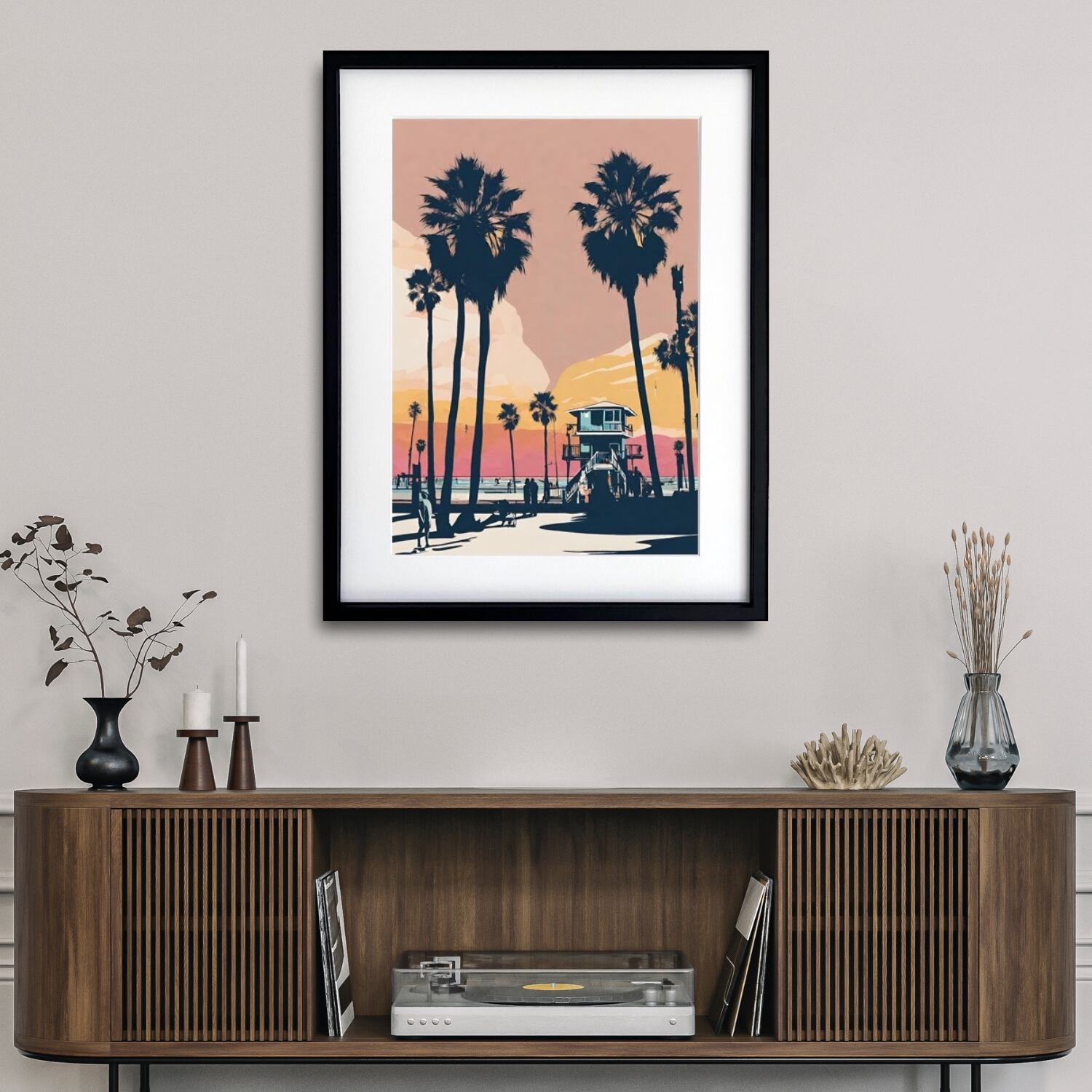 Santa Monica Beach|西海岸の夕景が彩るビンテージアートポスター|大人のレトロモダン空間に映えるサンタモニカの風景A4ポスター
