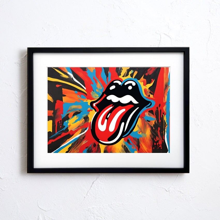 ROLLING STONES|ロックを象徴するベロマークを大胆に描くアブストラクトアートポスター|音楽好きの部屋を彩る1枚A3ポスター