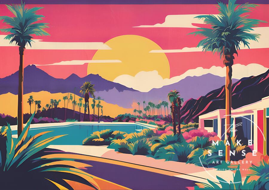 evening|ハリウッドサンセットアートポスター|レトロカラーの夕景が映える西海岸スタイルの部屋を彩るおしゃれなインテリアアートA2ポスター