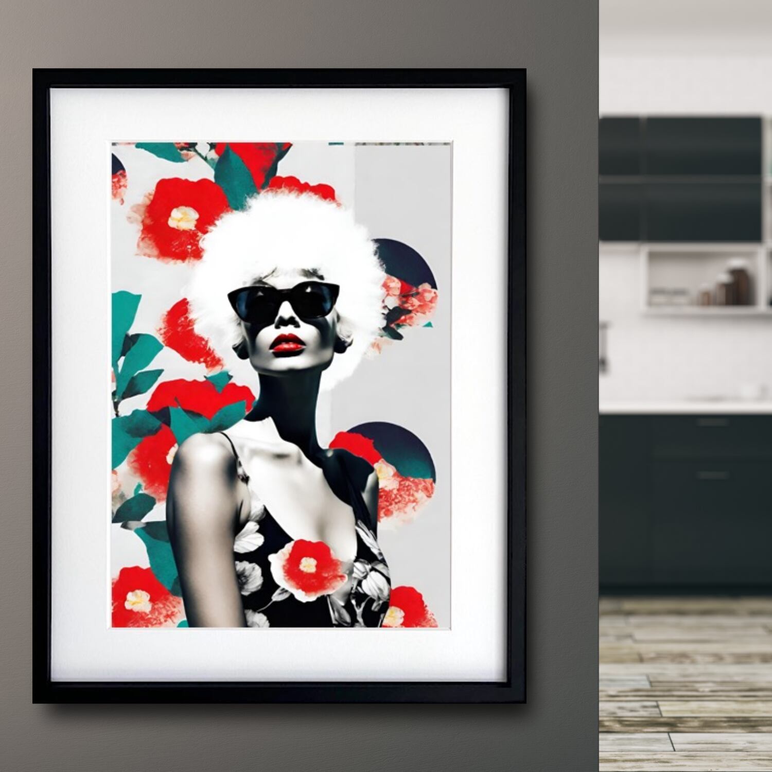 Ms.Tsubaki |和と洋が交差する椿コラージュアートポスター ファッションテイストで空間を洗練させるスタイリッシュインテリアA4ポスター