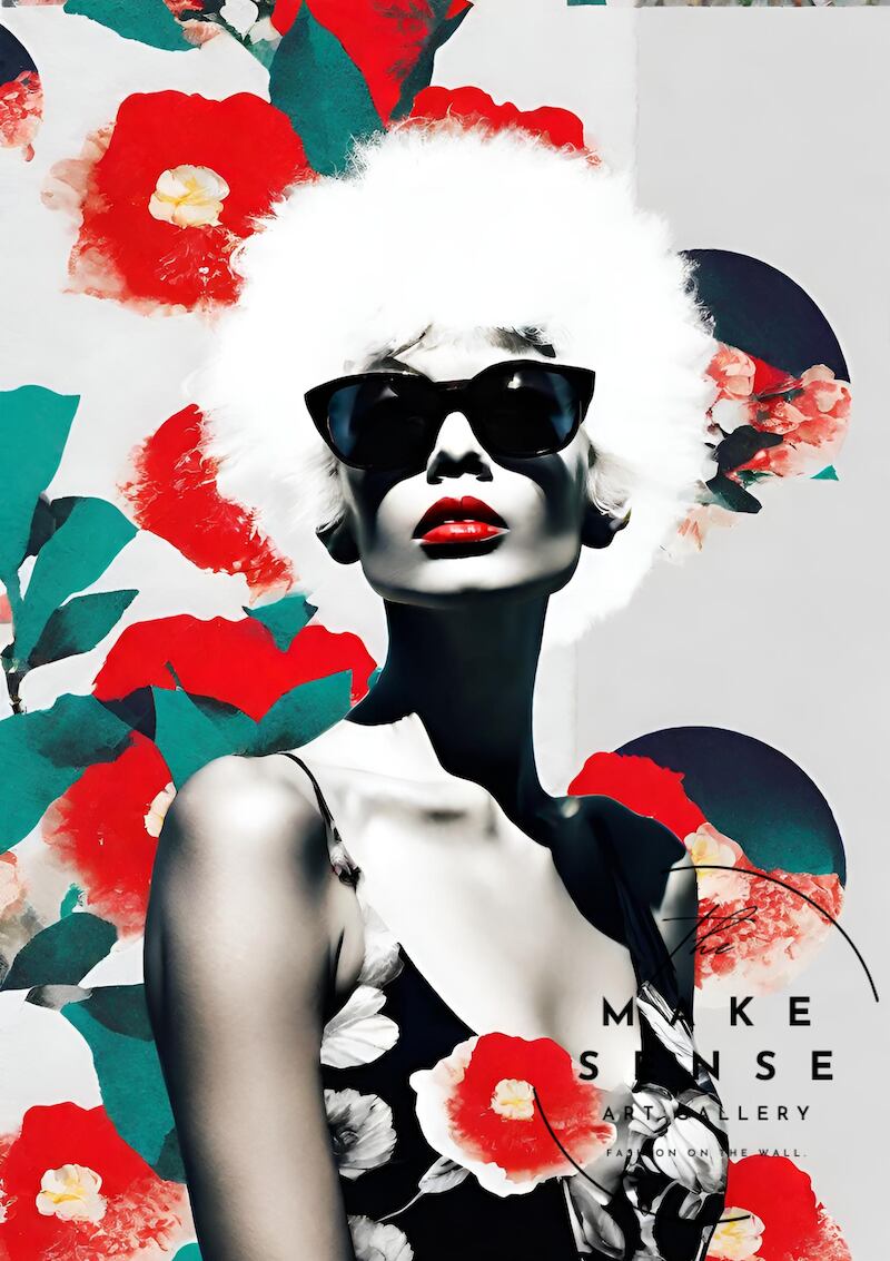 Ms.Tsubaki |和と洋が交差する椿コラージュアートポスター ファッションテイストで空間を洗練させるスタイリッシュインテリアA3ポスター