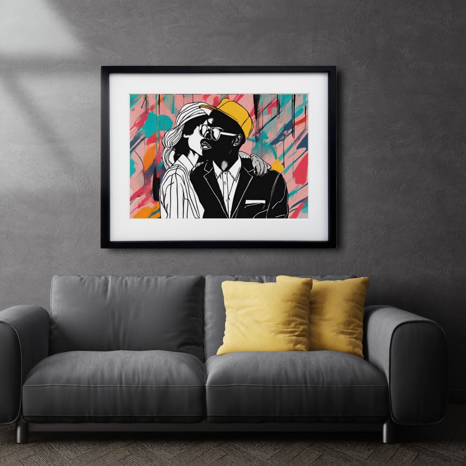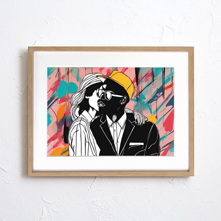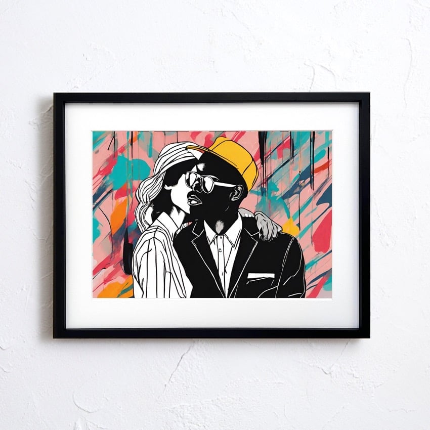 Boy Friend |抽象アートポスター ファッショナブルなカップルを描いたモダンインテリア向け壁掛けアート|リビング玄関にも映えるスタイリッシュな一枚|Make SenseA4ポスター