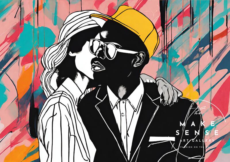 Boy Friend |抽象アートポスター ファッショナブルなカップルを描いたモダンインテリア向け壁掛けアート|リビング玄関にも映えるスタイリッシュな一枚|Make SenseA2ポスター