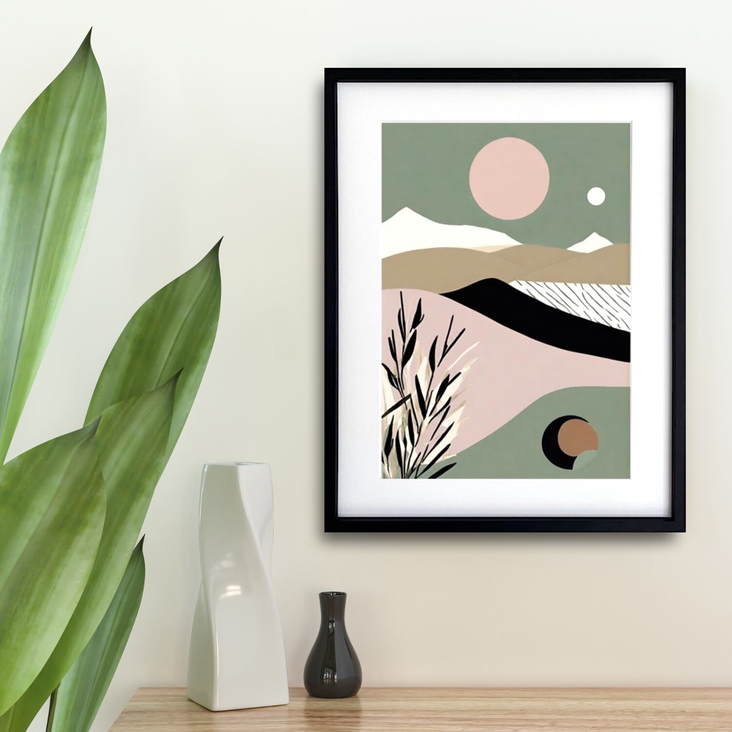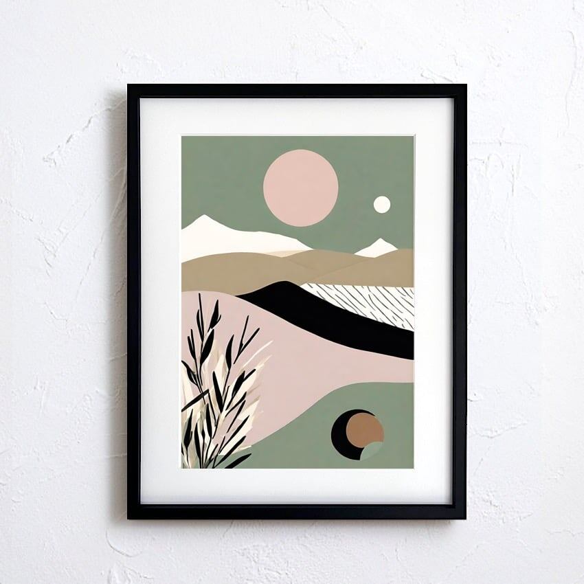 淡い色彩と奥行きのある構図が、空間を美しく整え、北欧・ミニマル・モダンインテリアにすっと溶け込みます。
