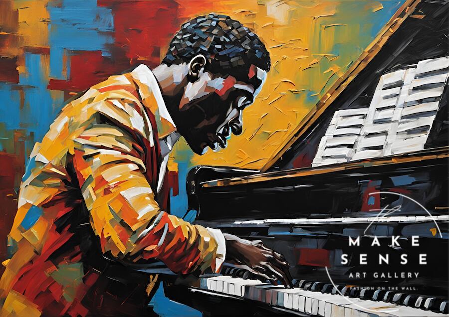 ピアノを弾く男性を描いたレトロモダンアートポスター|Piano Man|Make Sense|渋く洗練された壁面インテリア
