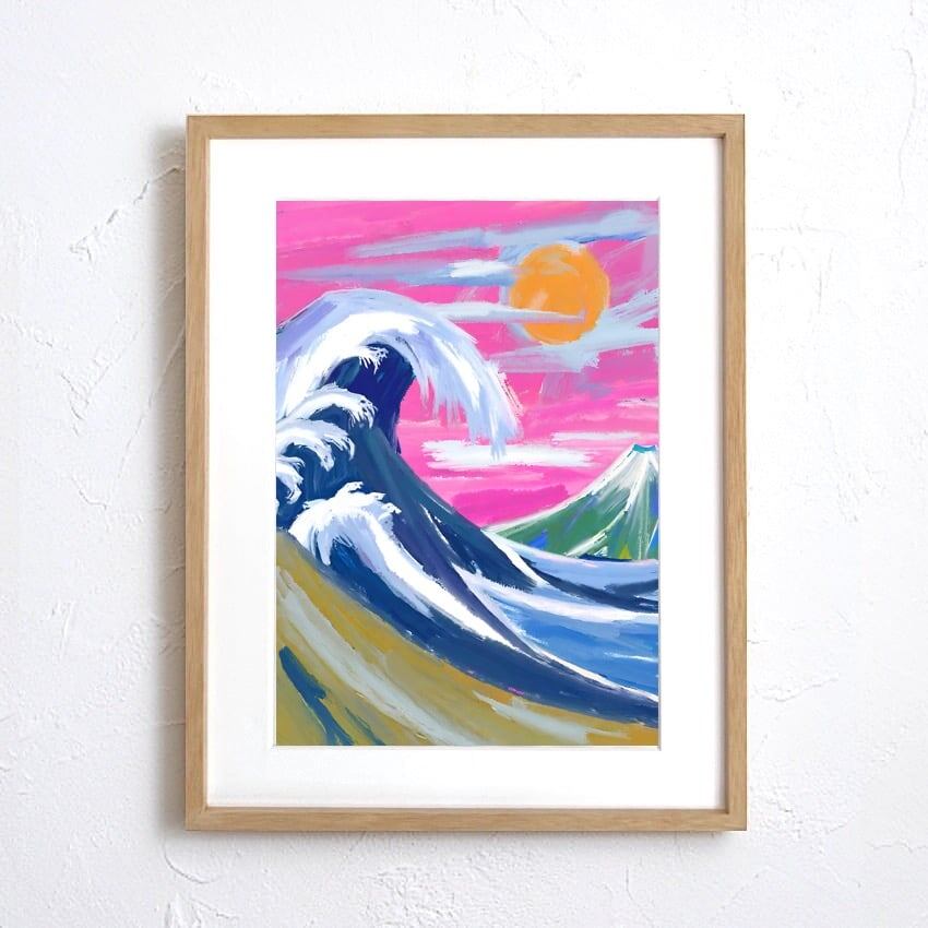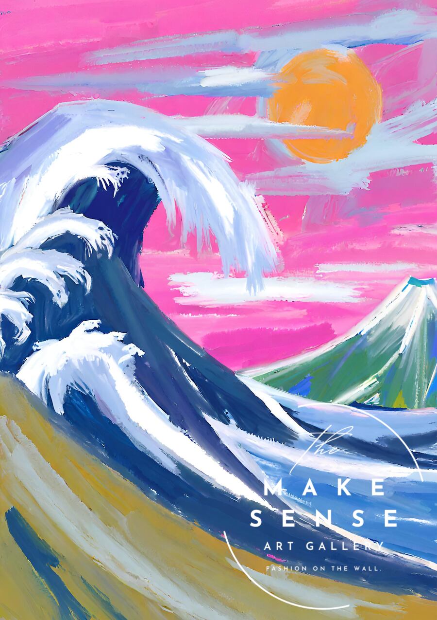北斎の波をポップに再構築したカラフルなドローイングアートポスター|The Great Wave Drawing|Make Sense|和モダンを彩る一枚