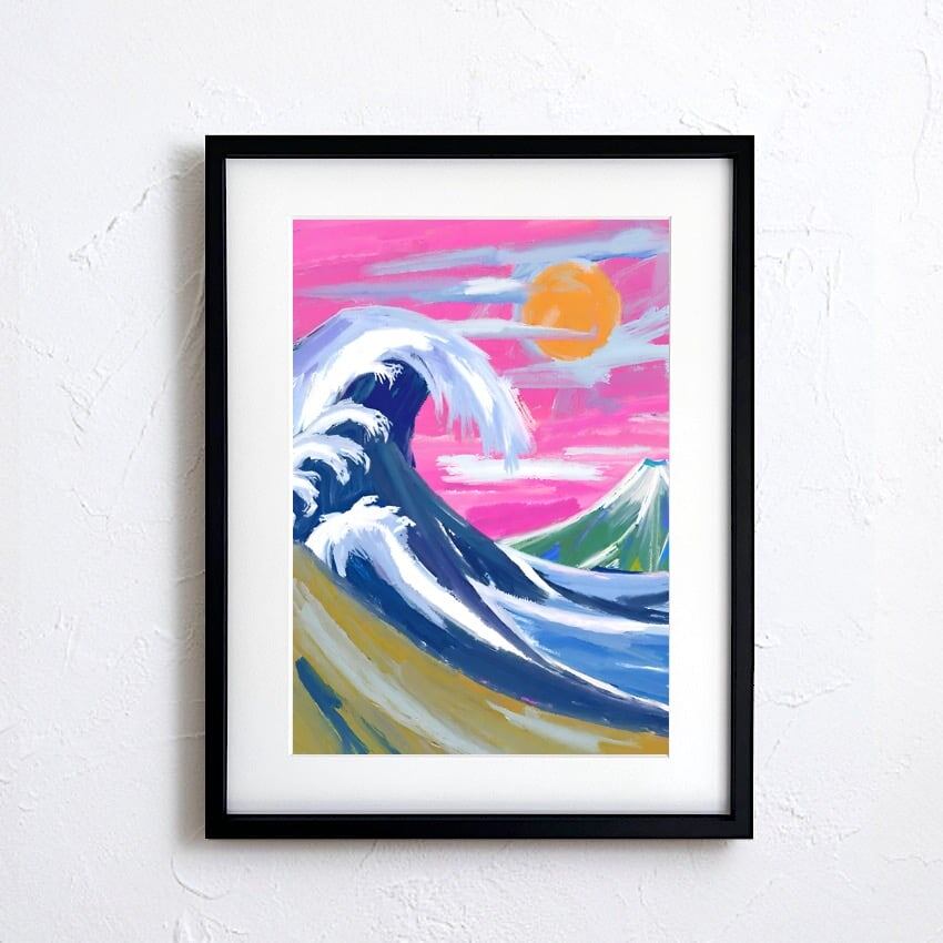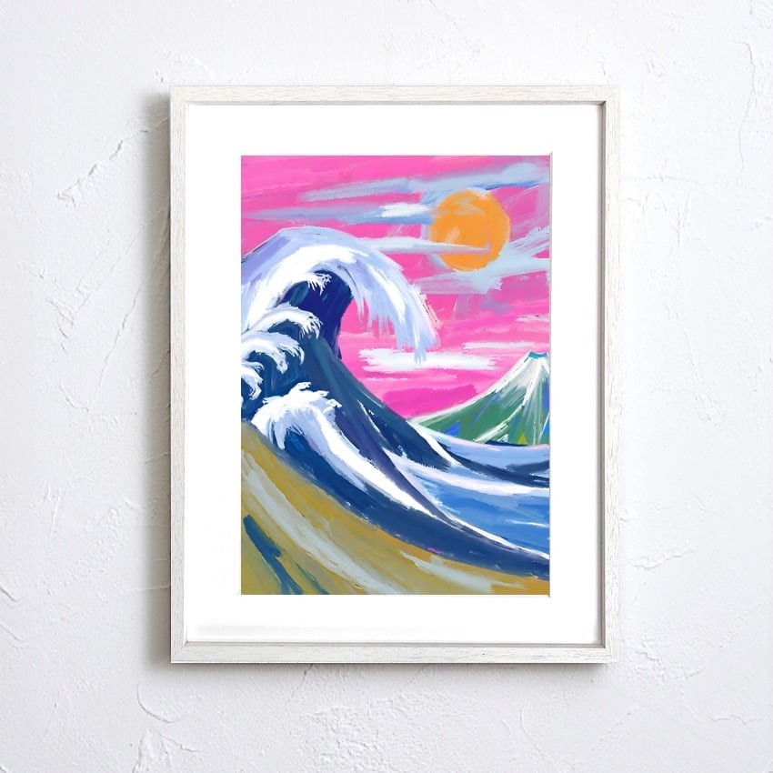 The Great Wave Drawing|北斎の波をポップに再構築したモダンアートポスター|和モダンやストリートに映える鮮やかな一枚|A3ポスター