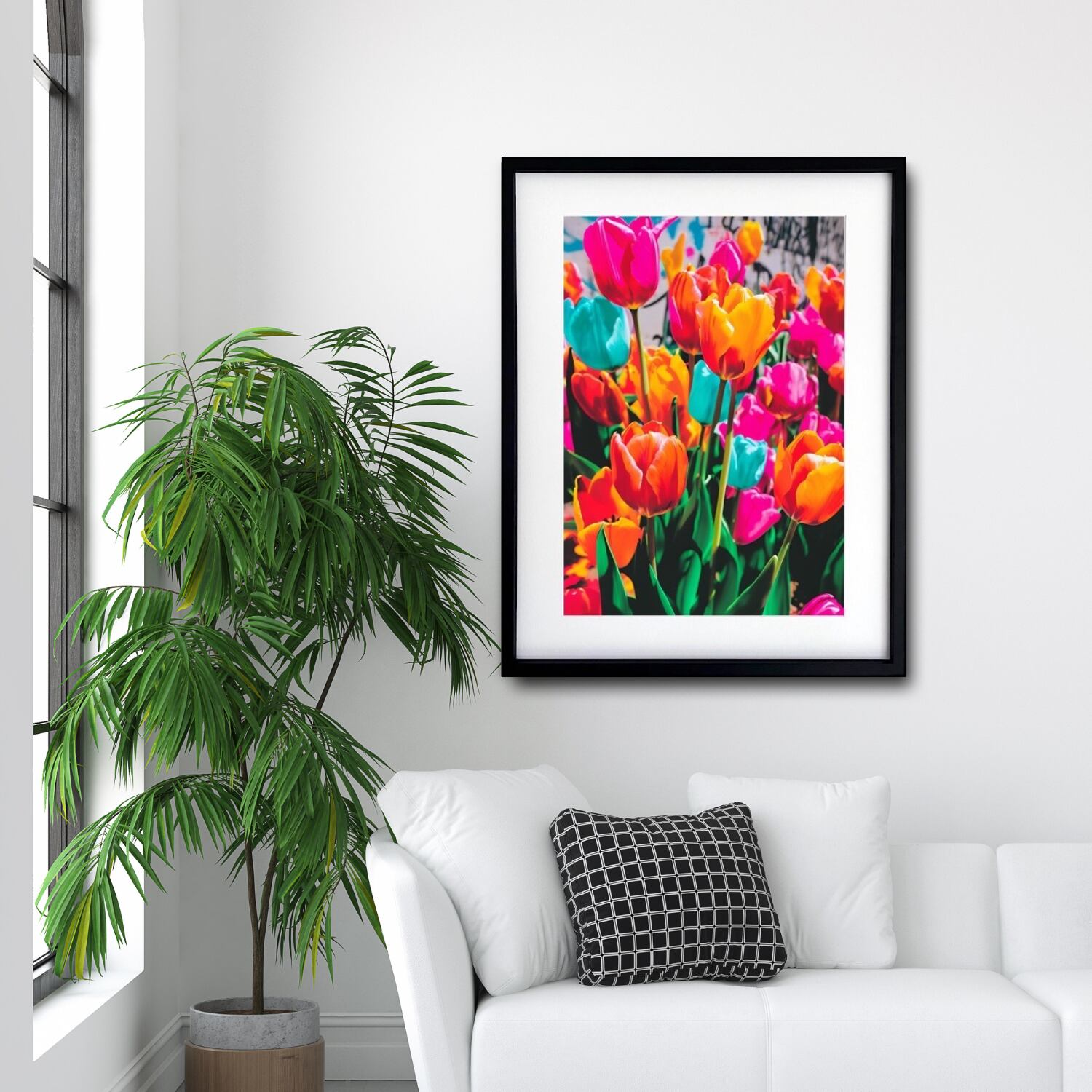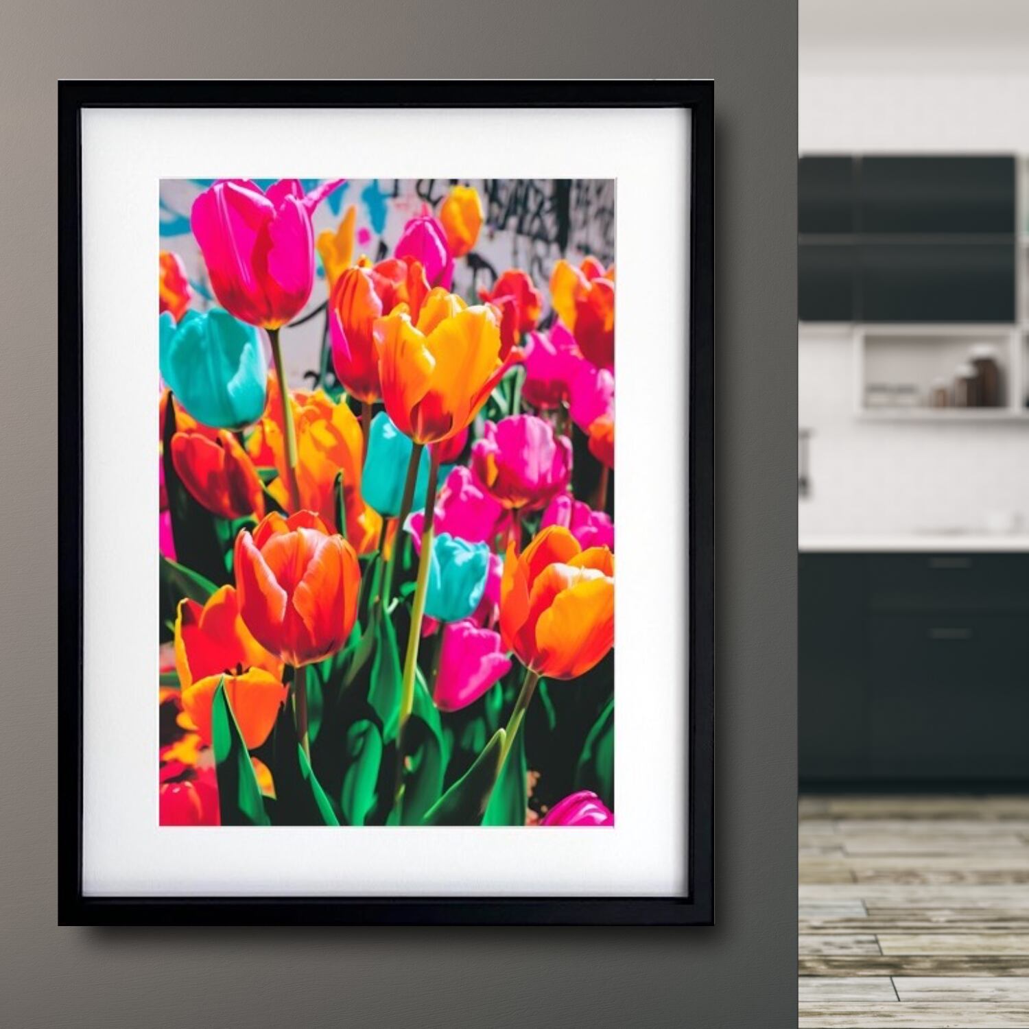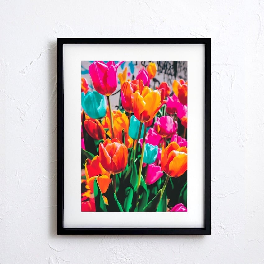 街角に咲くカラフルなチューリップのボタニカルアートポスター|Tulips blooming on the street|Make Sense|ストリート感のある花のデザイン