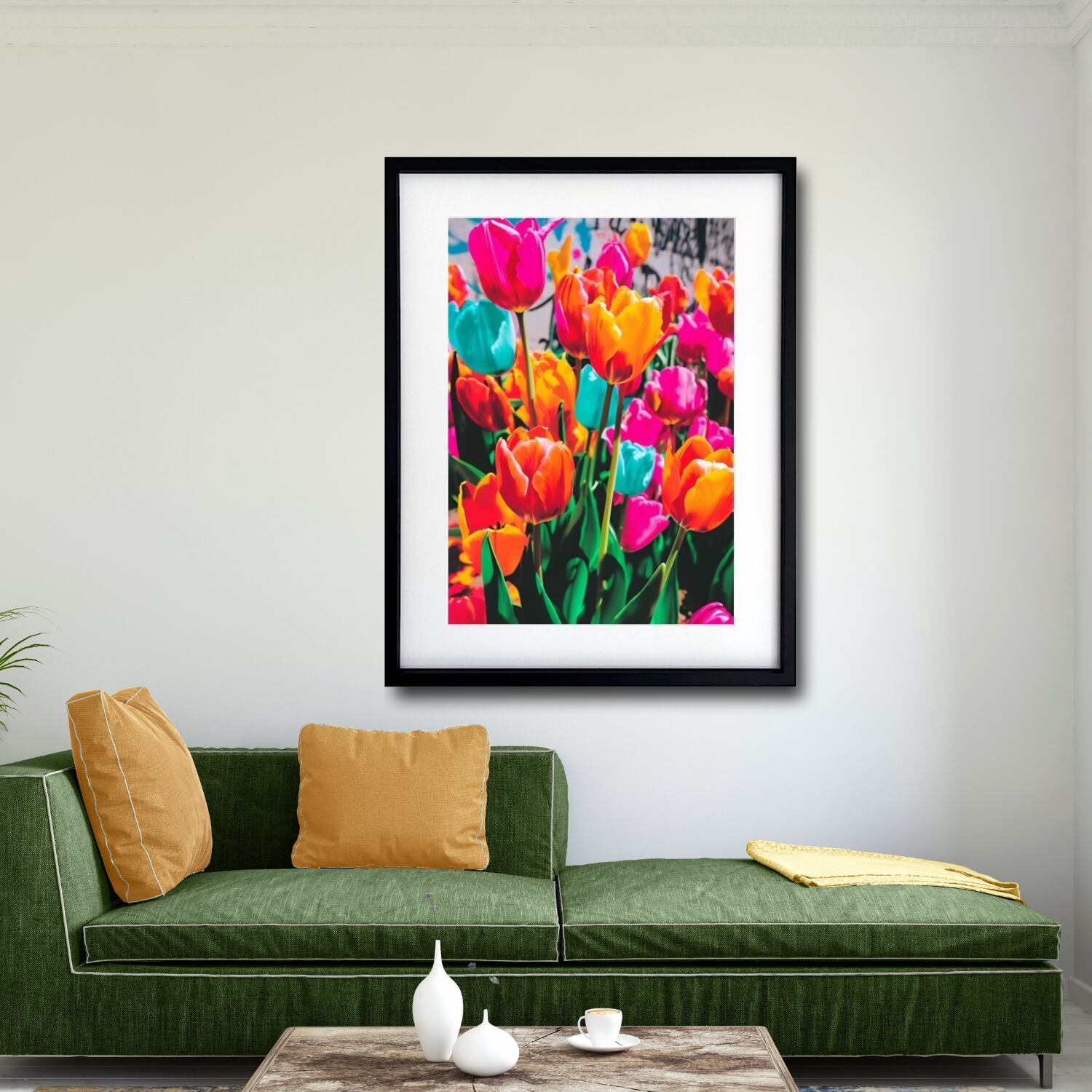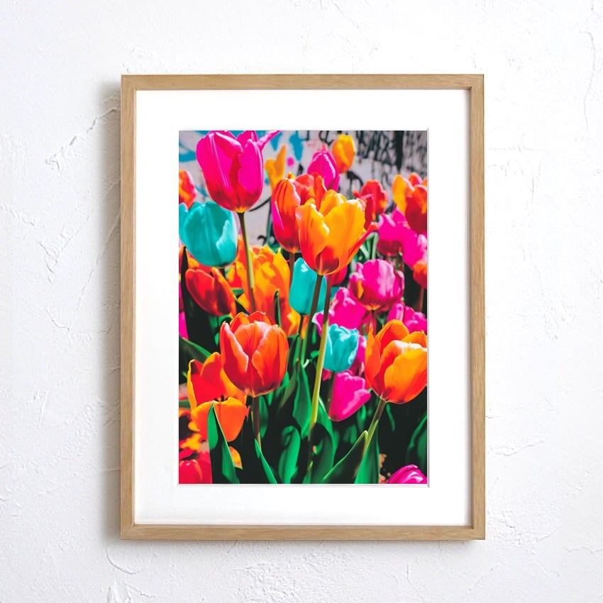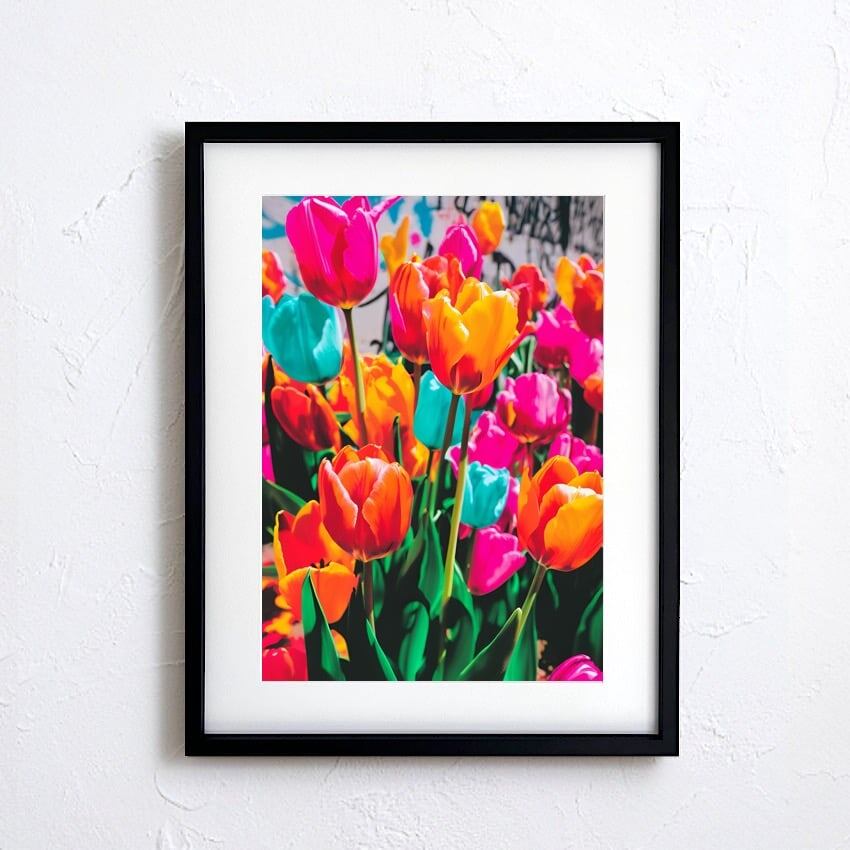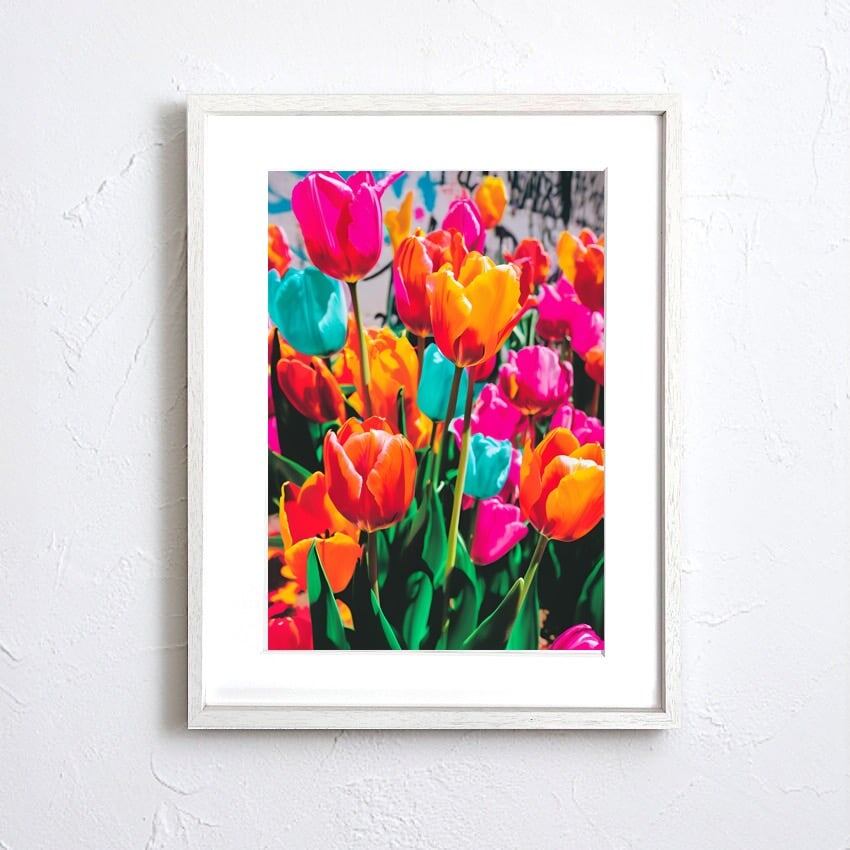 街角に咲くカラフルなチューリップのボタニカルアートポスター|Tulips blooming on the street|Make Sense|ストリート感のある花のデザイン