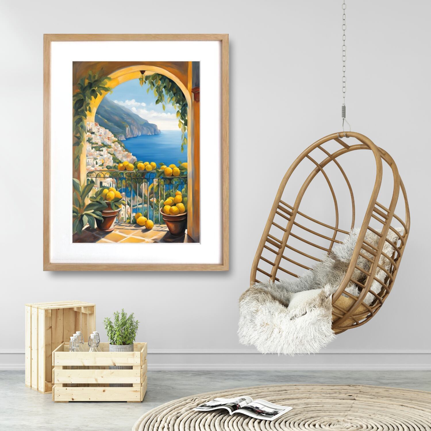 「レモンと地中海」は、シチリアの爽やかな海辺とレモンをモチーフにしたリゾート感あふれるアートポスター。