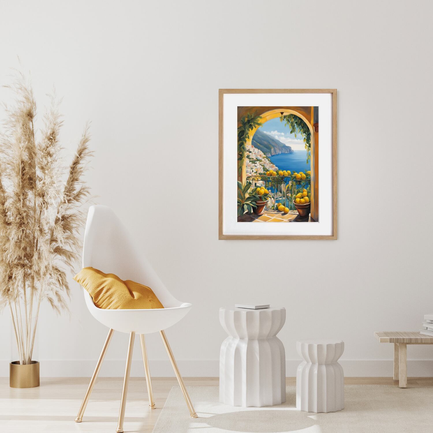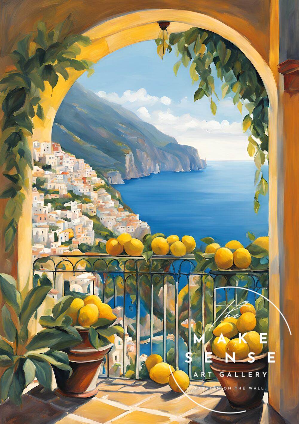 シチリアの地中海風景とレモンを描いたアートポスター|レモンと地中海|Make Sense|リゾート感ある北欧モダンデザイン