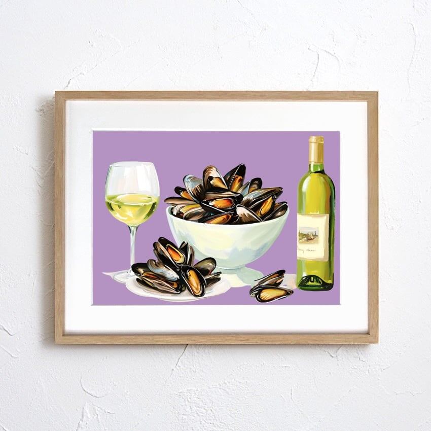 Mussels|ムール貝の白ワイン蒸しを描いた美食アートポスター|キッチンやダイニングを彩る北欧モダンデザイン|A4ポスター