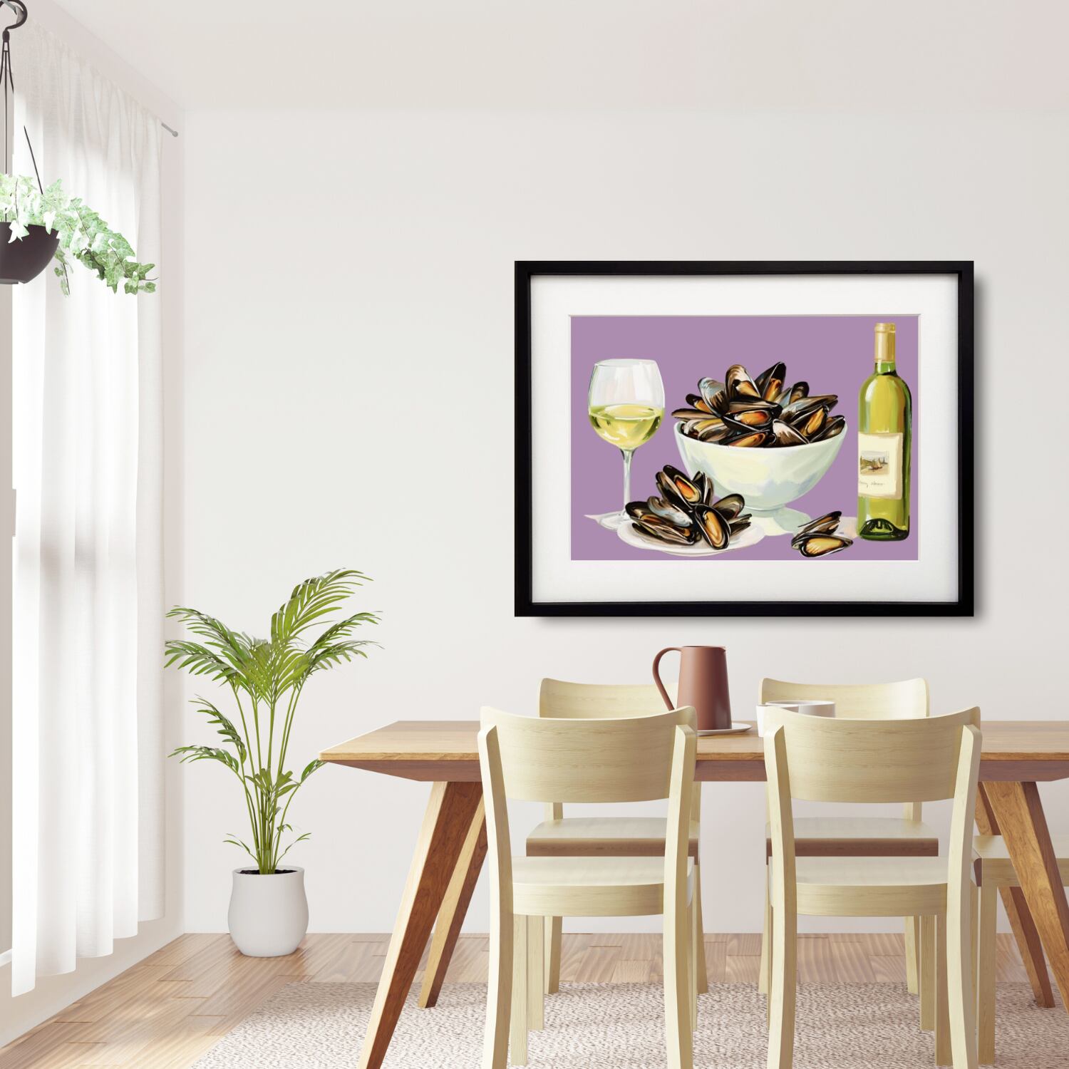 Mussels|ムール貝の白ワイン蒸しを描いた美食アートポスター|キッチンやダイニングを彩る北欧モダンデザイン|A2ポスター