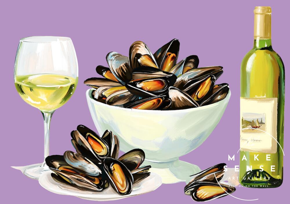 ムール貝の白ワイン蒸しを描いたアートポスター Mussels|Make Sense|キッチンやダイニングに映えるモダンデザイン